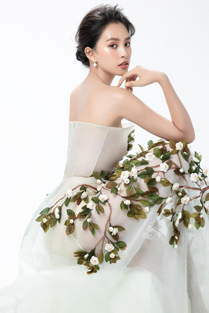 HHTO - Hoa hậu Tiểu Vy có bộ ảnh mới diện 2 chiếc váy của NTK Trần Hùng, hai mẫu thiết kế với sắc màu dịu nhẹ, đính kết cây cối hoa lá lạ mắt, khiến nàng hậu trông xinh đẹp rạng ngời như một “nữ thần rừng”.