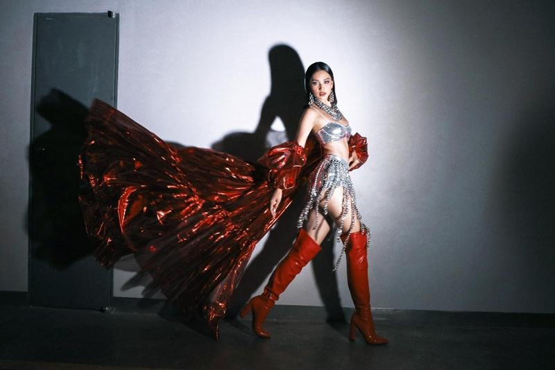 Trên trang cá nhân của mình mới đây, Tiểu Vy tung loạt ảnh studio của bộ trang phục mà cô diễn trong đêm concert Rap Việt, kèm lời cảm ơn tới NTK Hà Nhật Tiến và toàn bộ ê-kíp chương trình.