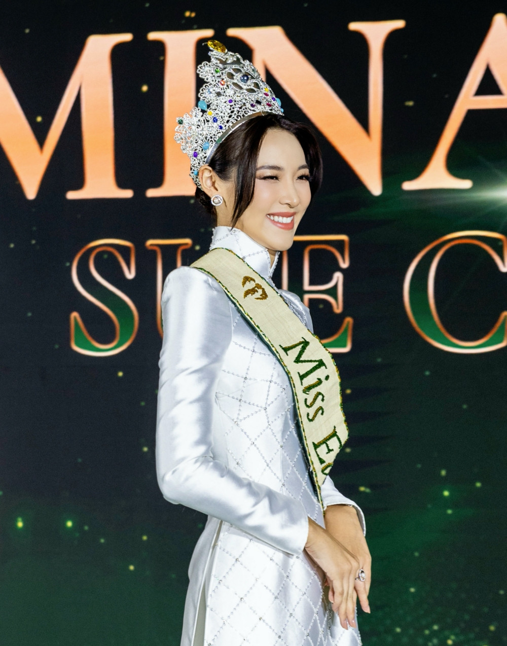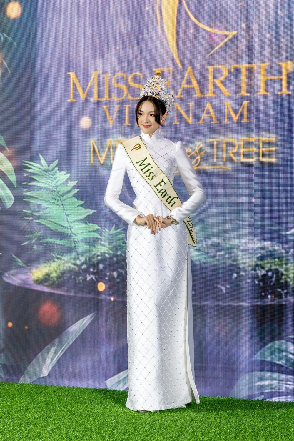 Nàng hậu cũng tham gia họp báo giới thiệu cuộc thi Miss Earth Vietnam 2023. Chọn diện áo dài trắng, Mina xinh đẹp dịu dàng, nhận được rất nhiều lời khen.