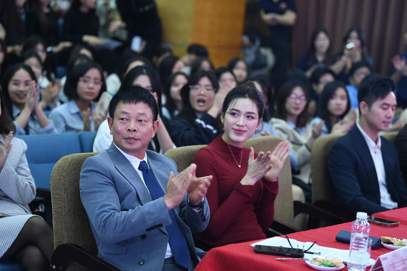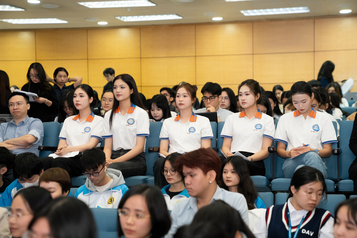Có mặt tại ngày hội tuyển sinh gồm sinh viên đến từ Học viện Ngoại giao và Đại học Thương mại, nổi bật có hai hoa khôi của trường. Tại hội trường, sinh viên các trường chăm chú lắng nghe nhà báo Phùng Công Sưởng - Trưởng ban tổ chức Hoa hậu Việt Nam 2024 - phát biểu điểm nổi bật, sự uy tín và lâu đời, đề cao sắc đẹp và trí tuệ phụ nữ Việt của cuộc thi.