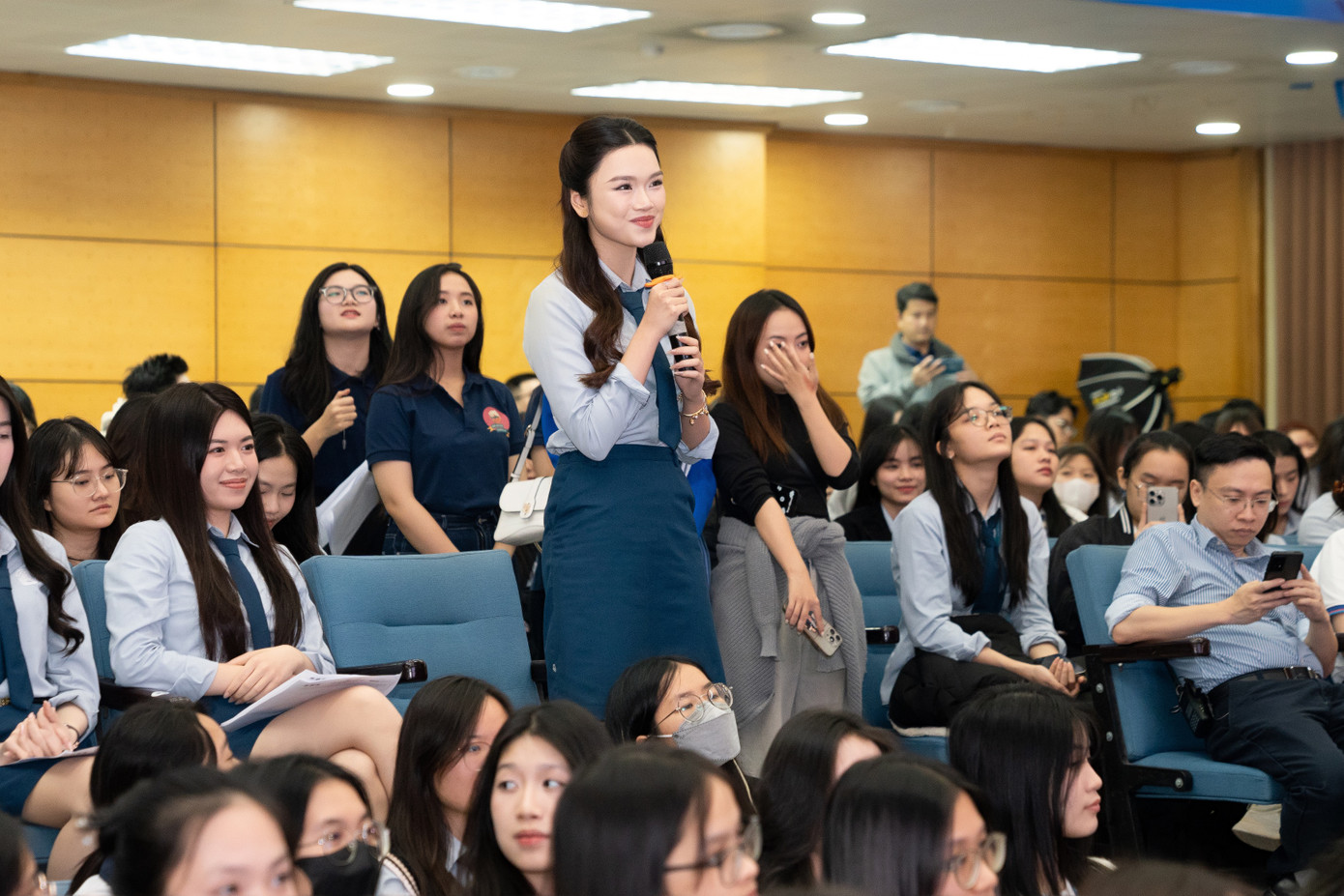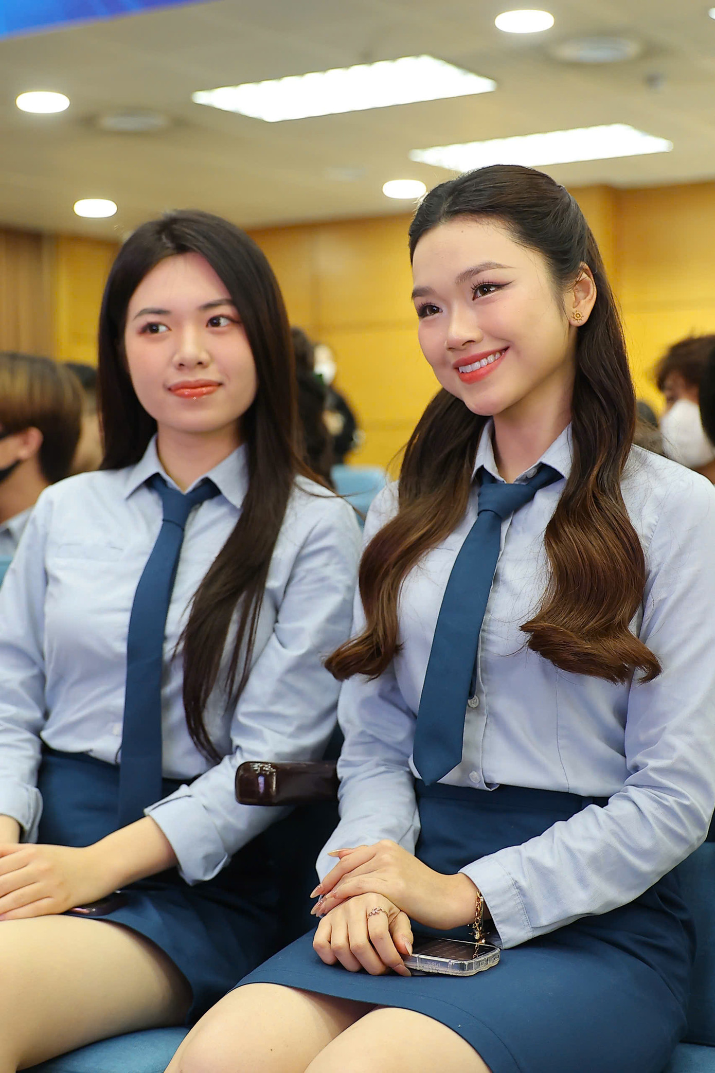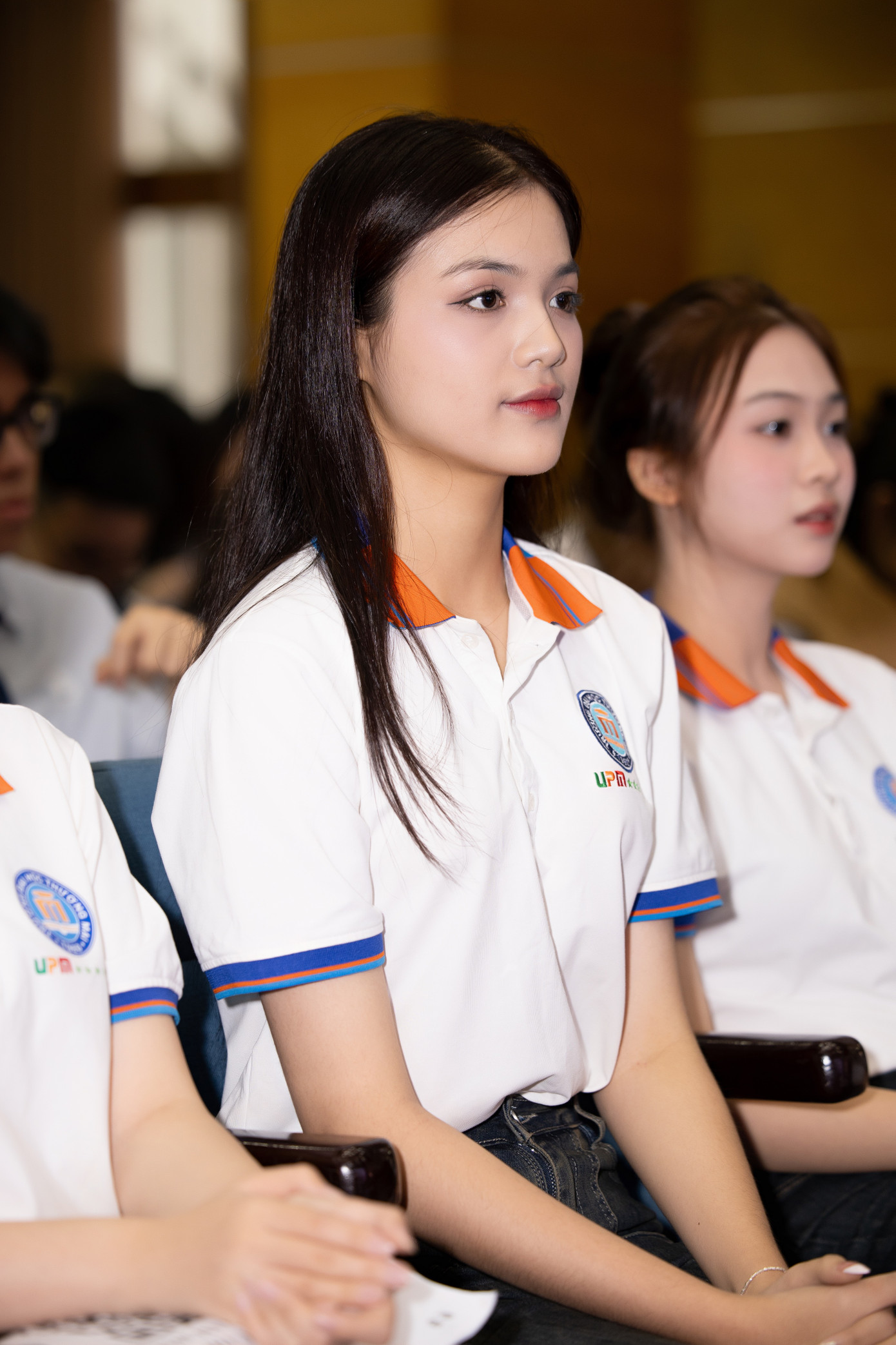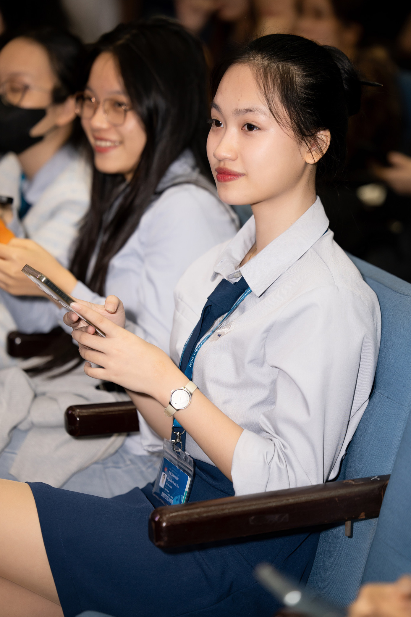 Sinh viên tham dự ngày hội tuyển sinh Hoa hậu Việt Nam 2024 có nhan sắc nổi bật, tự nhiên và hài hòa. Họ tham gia sôi nổi trong việc đặt câu hỏi gửi đến Trưởng ban tổ chức - nhà báo Phùng Công Sưởng và Hoa hậu Đỗ Thị Hà.