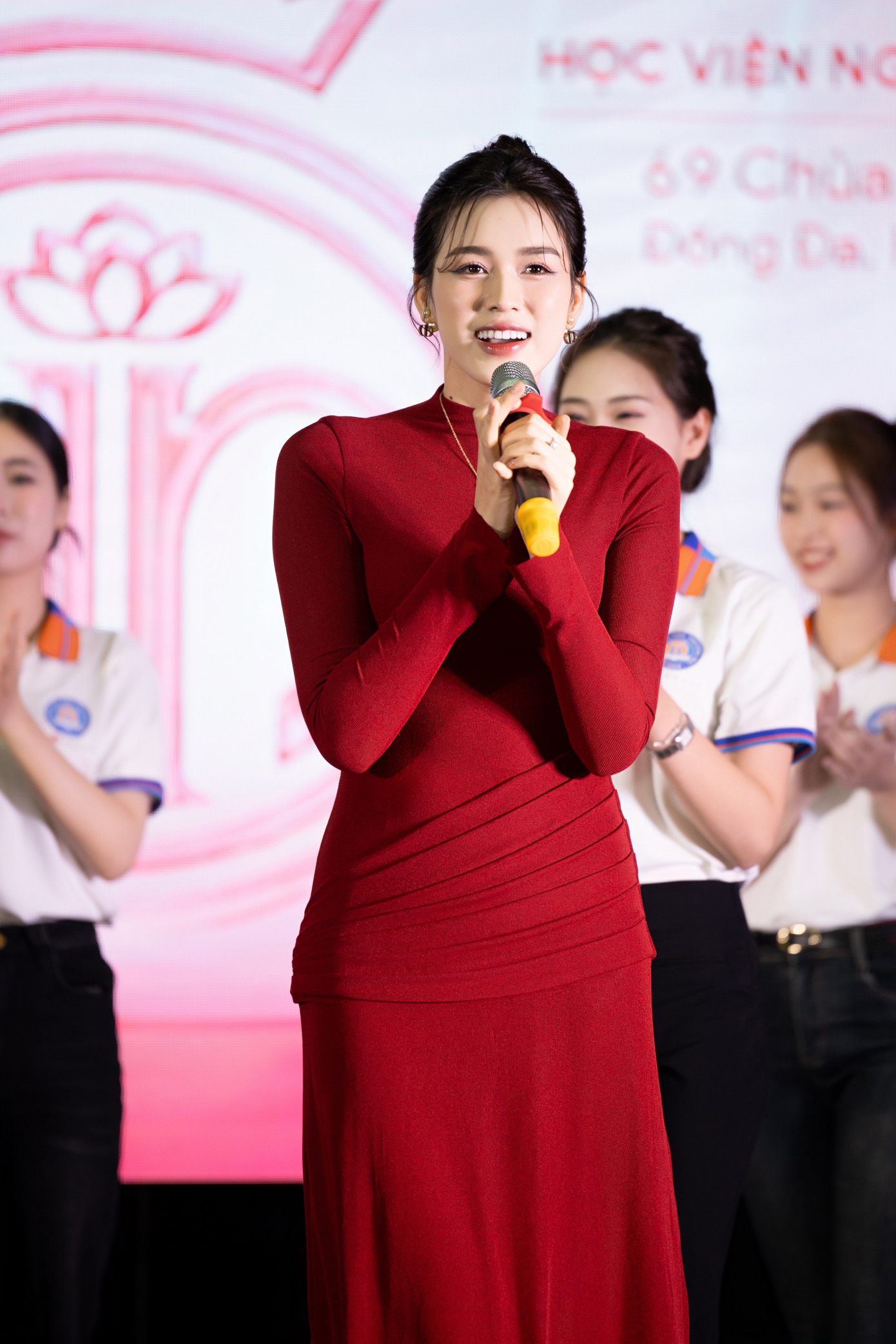 Có mặt tại buổi giao lưu cùng sinh viên Học viện Ngoại giao, Hoa hậu Đỗ Thị Hà chia sẻ nhiều kinh nghiệm đến các bạn trẻ. Bốn năm trước, cô không có cơ hội tham gia những buổi tuyển sinh hoành tráng. Sinh viên trẻ ngày nay có nhiều cơ hội hơn.
