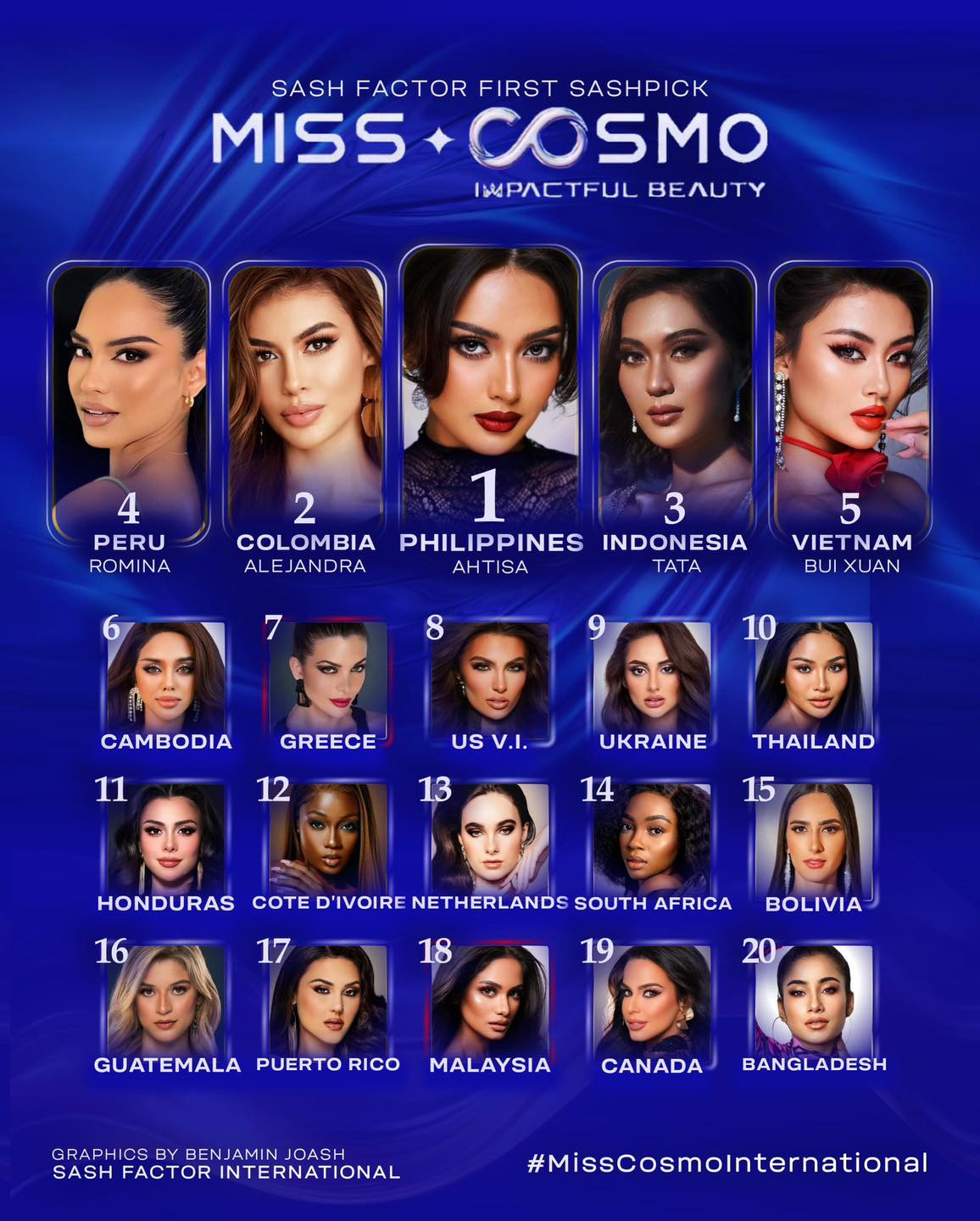 Chuyên trang Sash Factorcũng rất chú ý đến đấu trường nhan sắc quốc tế mới này của Việt Nam. Mới đây, chuyên trang này đã tung BXH dự đoán đầu tiên. Đại diện Philippines là người đẹp Ma. Ahtisa Manalo, từng giành ngôi vị Á hậu 1 Miss International 2018, được dự đoán sẽ chiến thắng.