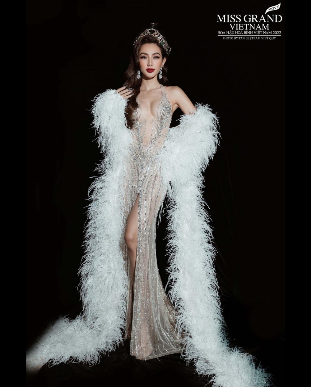 Hoa hậu Thùy Tiên là người đầu tiên mặc thiết kế này tại thảm đỏ Chung kết Miss Grand Vietnam 2022.