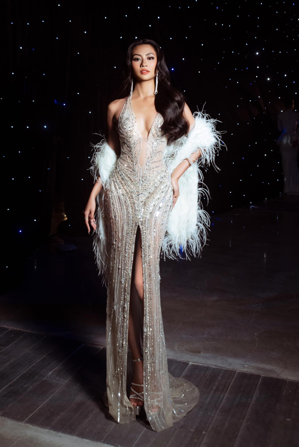 Bùi Quỳnh Hoa là người đẹp thứ 3 diện thiết kế này. Người đẹp diện mẫu váy sang trọng tại thảm đỏ đêm Chung kết Supermodel International Philippines 2023. Khi đó, cô vẫn chưa đăng quang Miss Universe Vietnam 2023.