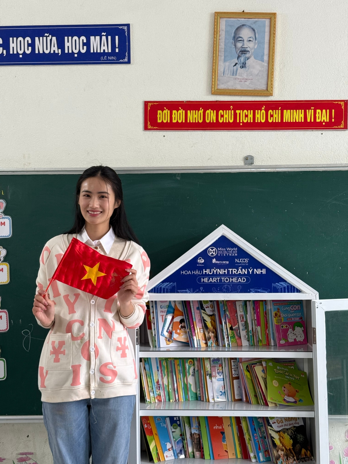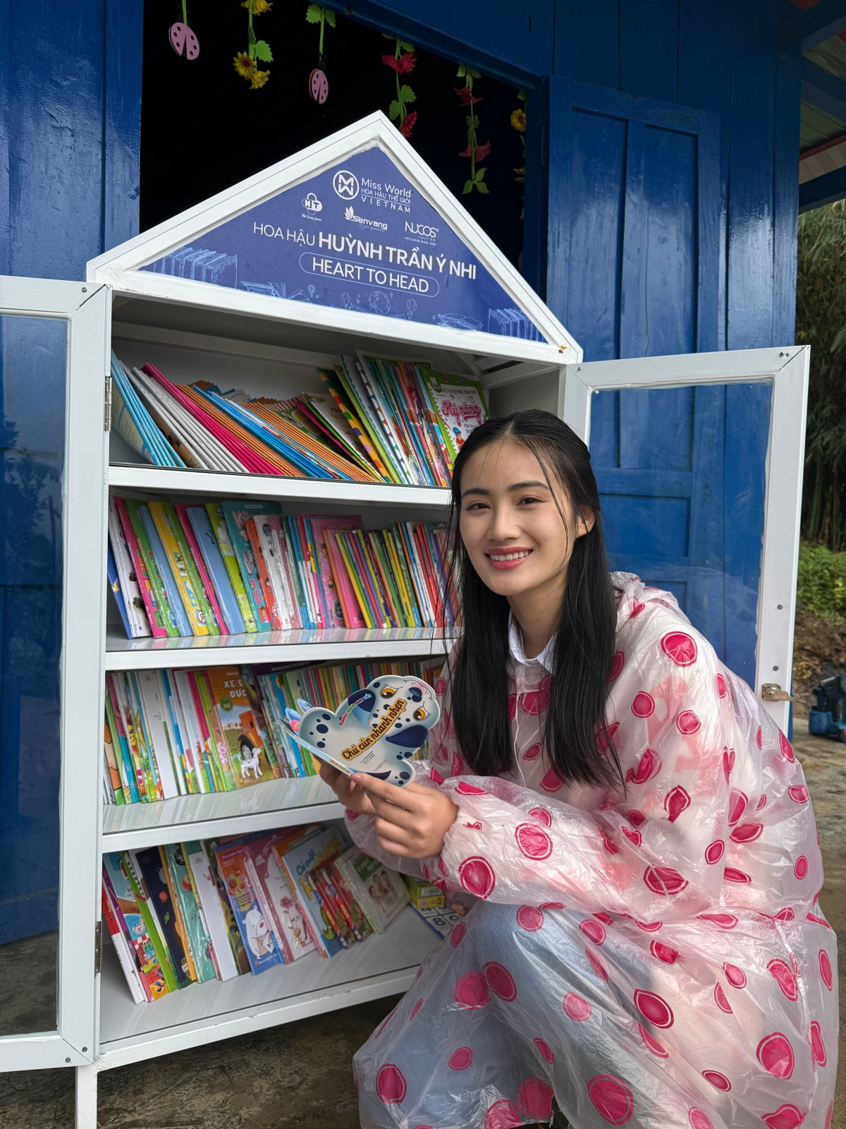 Hoa hậu Ý Nhi chia sẻ hoạt động trao tặng tủ sách nằm trong dự án Heart to Head được cô mang đến cuộc thi Miss World lần thứ 72. Thông qua dự án, Ý Nhi mong muốn được đóng góp một phần nhỏ công sức để giúp trẻ em tu sửa những ngôi trường, đồng thời trao tặng những tủ sách bổ ích cho các em học sinh ở những vùng khó khăn, thiếu thốn điều kiện đến trường.