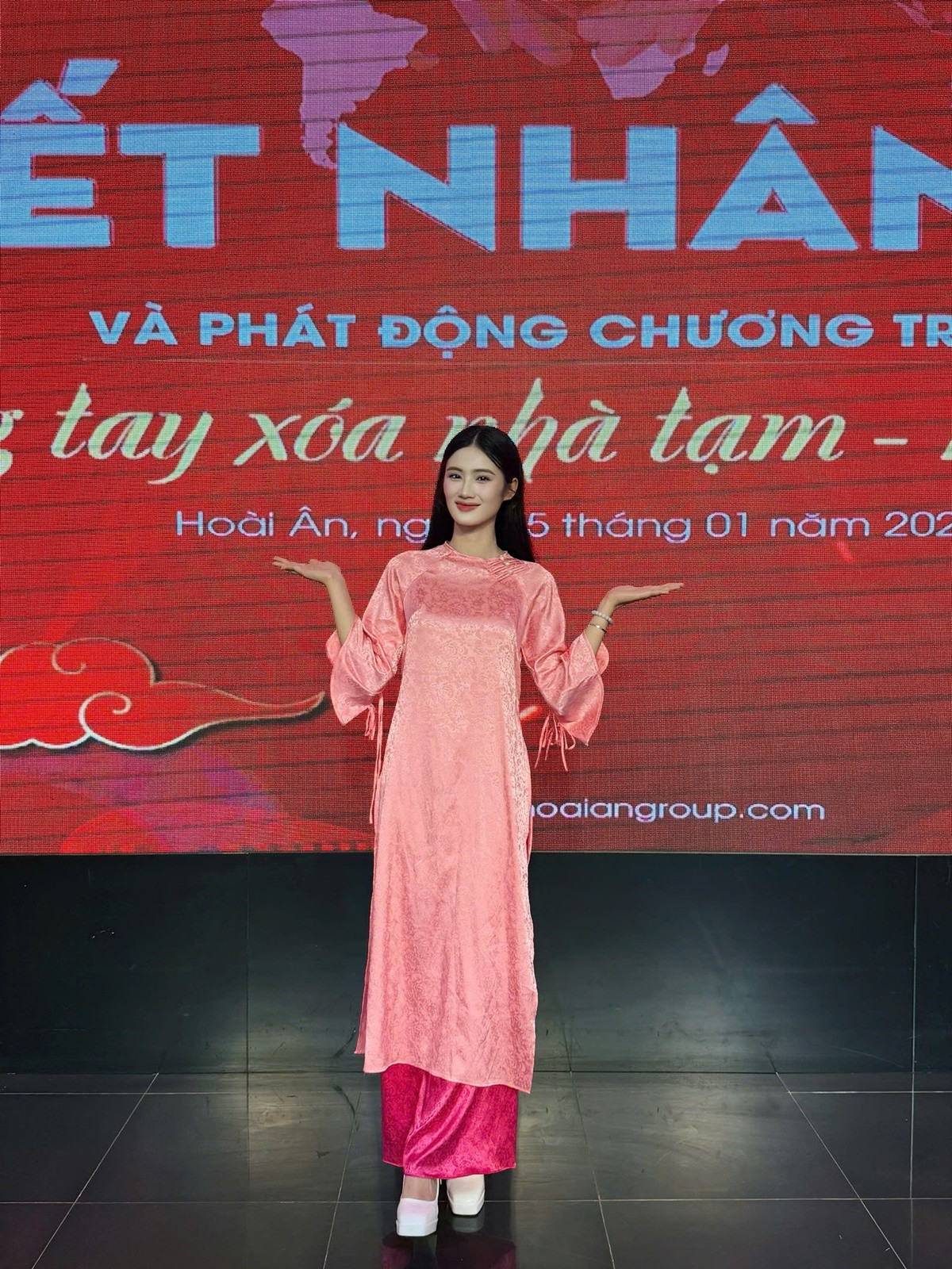 Ý Nhi chọn loạt áo dài đơn giản, màu sắc nhẹ nhàng trong các hoạt động từ thiện.