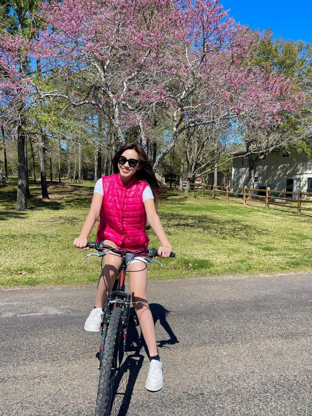 Sau khi kết thúc hành trình Miss World 2021, Hoa hậu Đỗ Thị Hà đã bay tới Mỹ, nghỉ ngơi vài ngày để chờ chuyến bay thẳng về Việt Nam. Thời tiết tại Mỹ hiện tại đã bước vào mùa Xuân, nắng đẹp trong veo, nàng hậu tranh thủ đạp xe tận hưởng không khí trong lành và khoe loạt ảnh vô cùng xinh tươi.