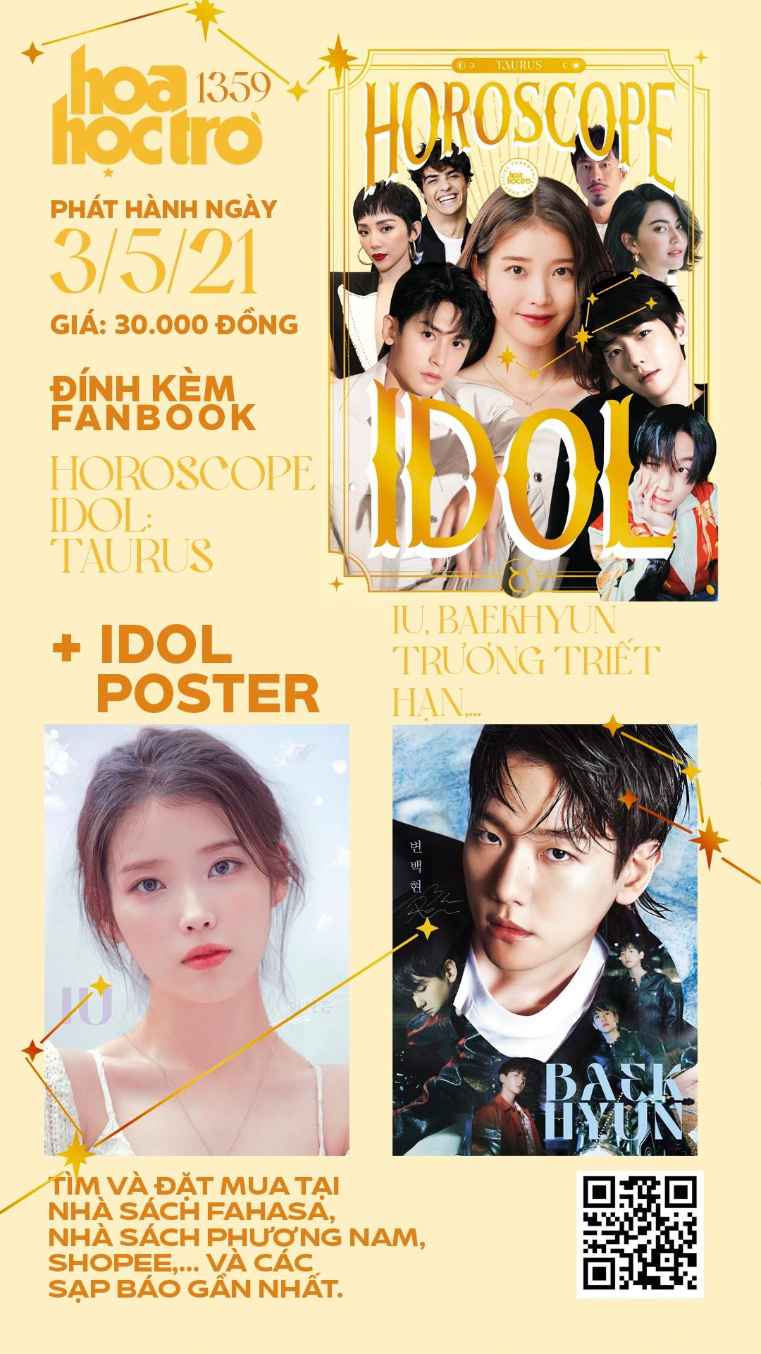 Hoa Học Trò 1359 tặng kèm fanbook Horoscope Idol Taurus và 2 idol poster IU & Baekhyun (EXO) sẽ chính thức phát hành vào thứ Ba 4/5/2021 tại các sạp báo trên toàn quốc, các nhà sách FAHASA, nhà sách Phương Nam, Shopee với giá quen thuộc chỉ 30.000 đồng. Cùng đón xem nha!