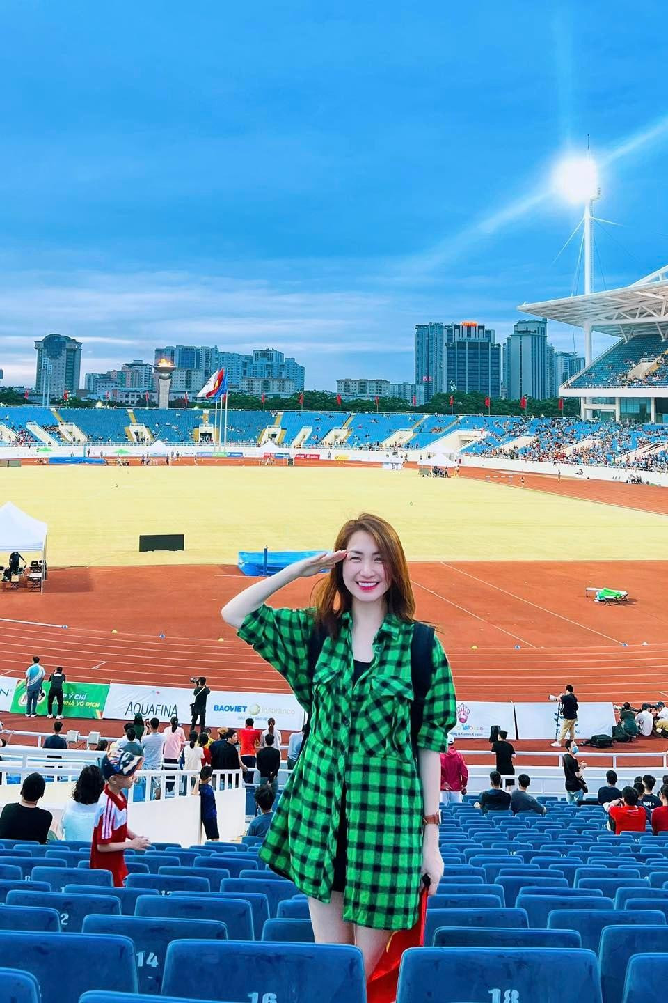 Có mặt tại Hà Nội hôm 15/5, Hòa Minzy phấn khởi chia sẻ nhiều hình ảnh đến sân vận động Mỹ Đình cổ vũ cho các vận động viên nước nhà tranh tài tại SEA Games 31.