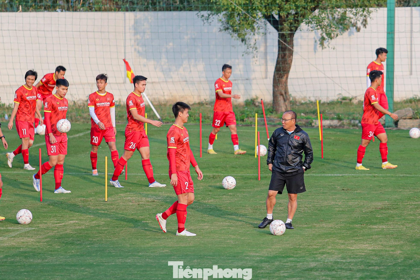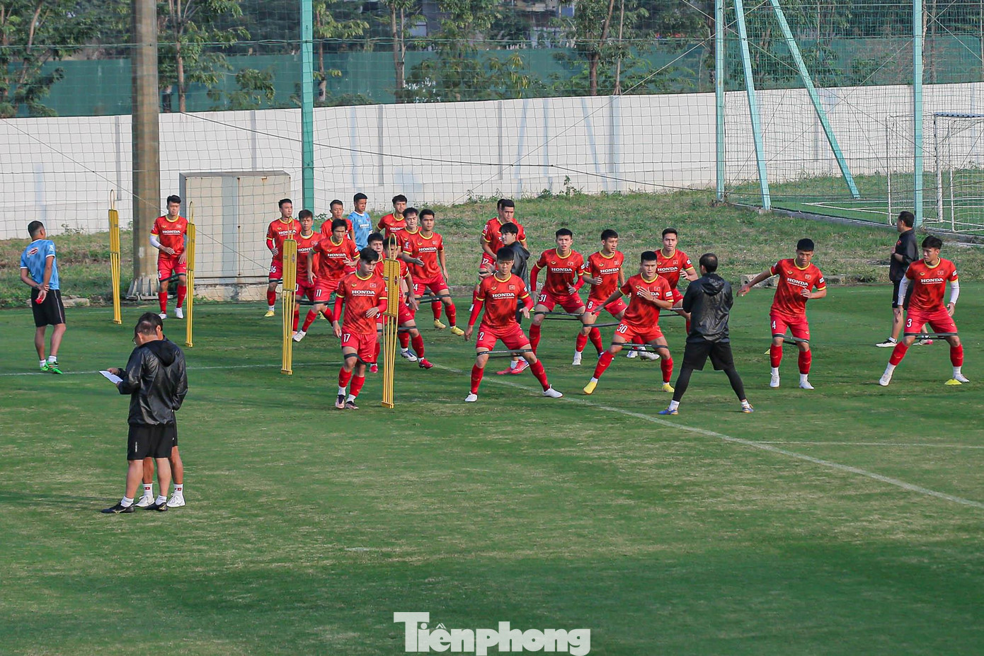 | Sau màn khởi động, BHL cho các cầu thủ tập những bài tập dẫn bóng qua chướng ngại vật, phối hợp ngắn... |