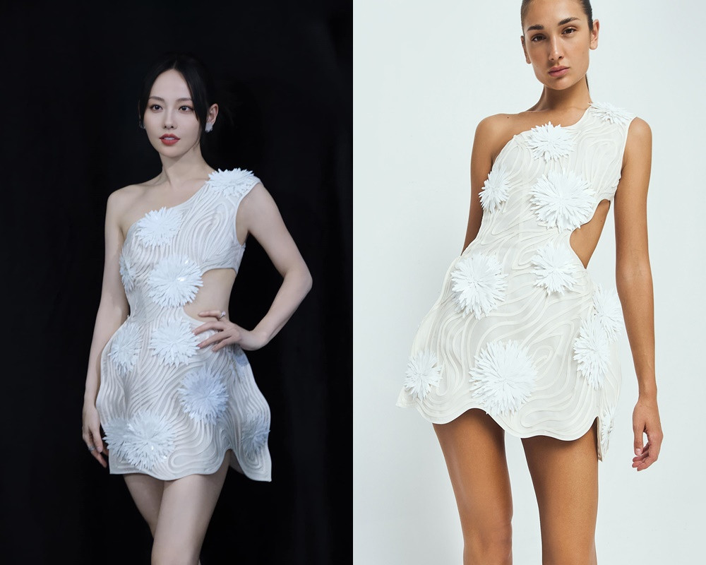 Những tưởng Hoàng Ku chỉ để Chi Pu diện đồ thời trang Việt ở Đạp Gió 2023 thì hóa ra tới Trương Gia Nghê, anh vẫn tiếp tục áp dụng công thức này. Cả hai set đồ của Trương Gia Nghê đều đến từ các thương hiệu của Việt Nam, bộ váy này là một thiết kế của NTK Công Trí.