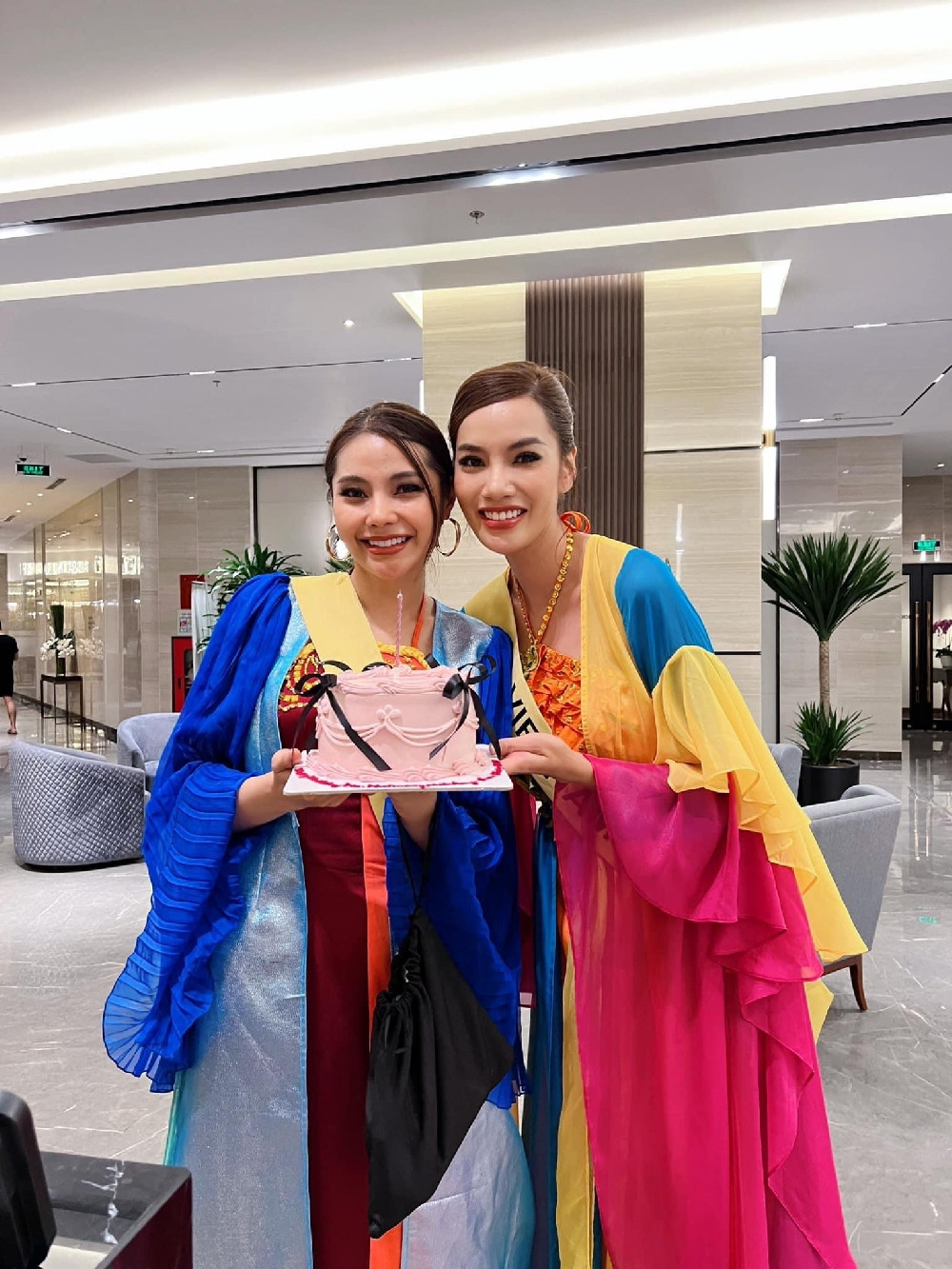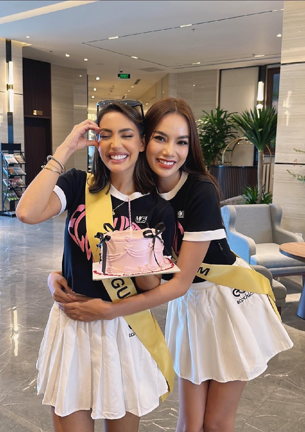 Đặc biệt, Hoàng Phương làm “xiêu lòng" hai đại diện Lào và Paraguay khi tổ chức sinh nhật đầy bất ngờ cùng bánh kem cho các cô gái.