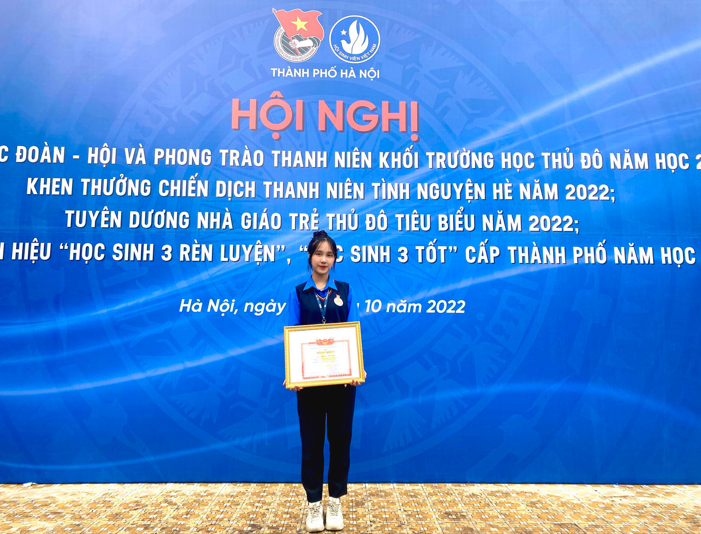 Nguyễn Đỗ Lan Hương - học sinh lớp 11A2 trường THPT Kim Liên, Trưởng ban phong trào BCH Đoàn trường, “nắm trùm” truyền thông và hoạt động phong trào.