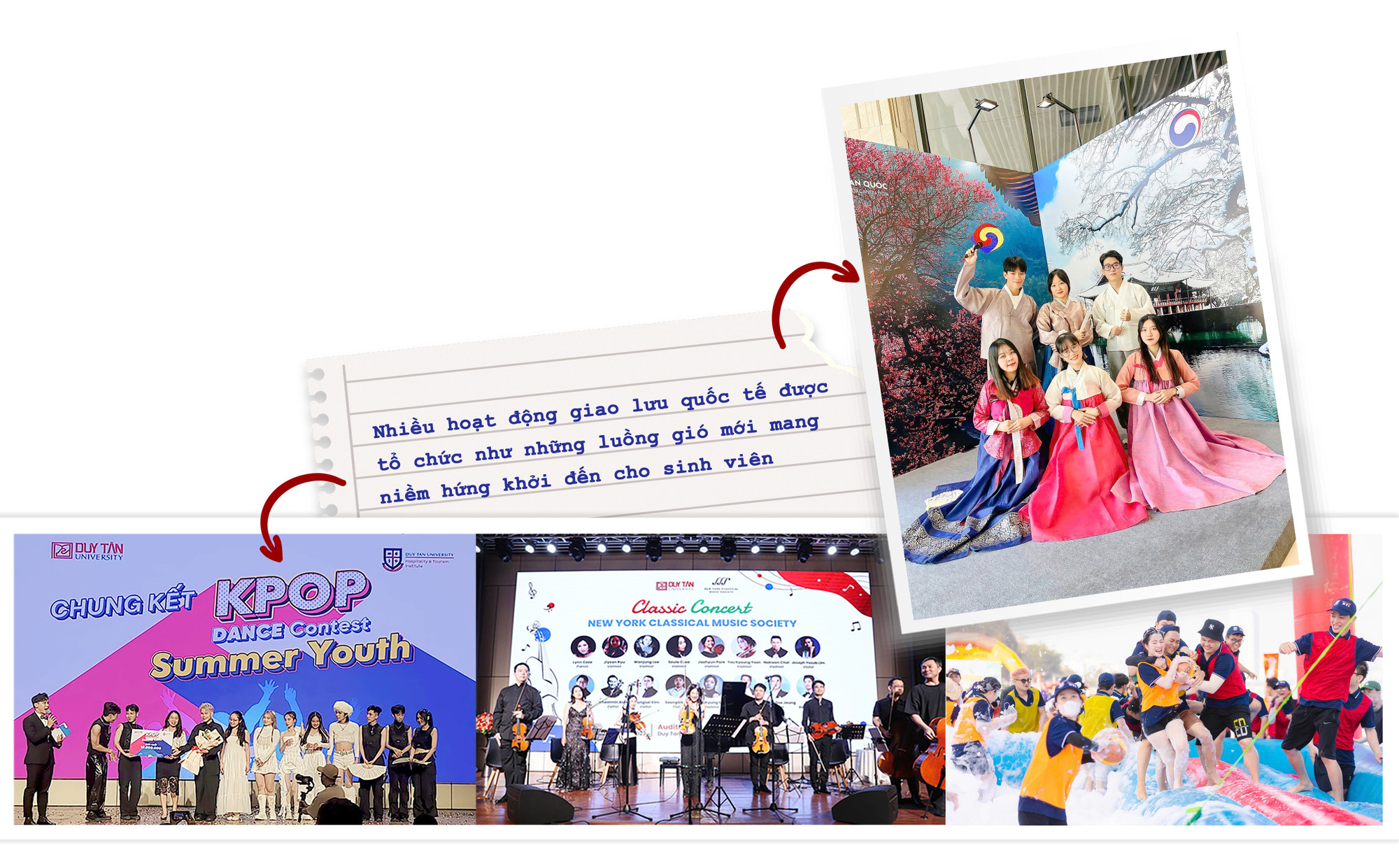 Với sự nỗ lực của GS.TS. Mo Chul Min cùng sự tâm huyết của các các bộ, giảng viên và sinh viên Trường Du lịch (HTi), các hoạt động đào tạo, trao đổi sinh viên và giao lưu văn hóa được triển khai vô cùng hiệu quả đã mang đến niềm hứng khởi mới ngay tại trường. Tuần lễ Giao lưu Văn hóa ASEAN - Hàn Quốc do ĐH Duy Tân phối hợp với Viện Văn hóa Hàn Quốc tại Hà Nội và Tổng cục Du lịch Hàn Quốc tại Việt Nam tổ chức ngay tại ĐH Duy Tân đã mang đến một làn gió mới với rất nhiều hoạt động kết nối, giao lưu văn hóa, ẩm thực giữa các quốc gia ASEAN và Hàn Quốc. Trong đó, 16 nghệ sĩ gốc Hàn đến từ Hiệp hội Âm nhạc Cổ điển New York (New York Classical Music Society - NY CMS) đã có buổi biểu diễn đầy cảm hứng trong tràn ngập thanh âm của nhạc cổ điển và nhạc Giáng sinh ở ĐH Duy Tân vào chiều tối 16/12/2023.