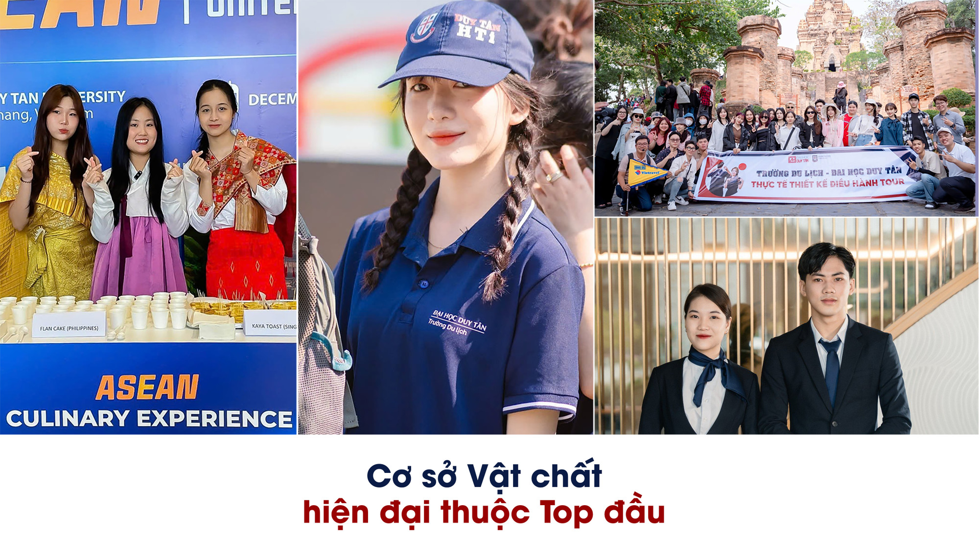 Hiếm có trường đại học kiên định với chủ trương đầu tư bài bản và hiện đại các trang thiết bị phục vụ giảng dạy và học tập như ở ĐH Duy Tân. Thấy rõ một hệ sinh thái cơ sở vật chất hoàn chỉnh và đa dạng cho từng chuyên ngành Du lịch ngay tại trường. Đó là Khách sạn thực hành 5 sao, Trung tâm Hội nghị, Công ty Lữ hành UTravel, quán cà phê,… Môi trường học tập nhiều thuận lợi này sẽ hỗ trợ tối đa cho sinh viên thực hành, nâng cao tay nghề để tự tin làm việc trong môi trường thực tế sau này.