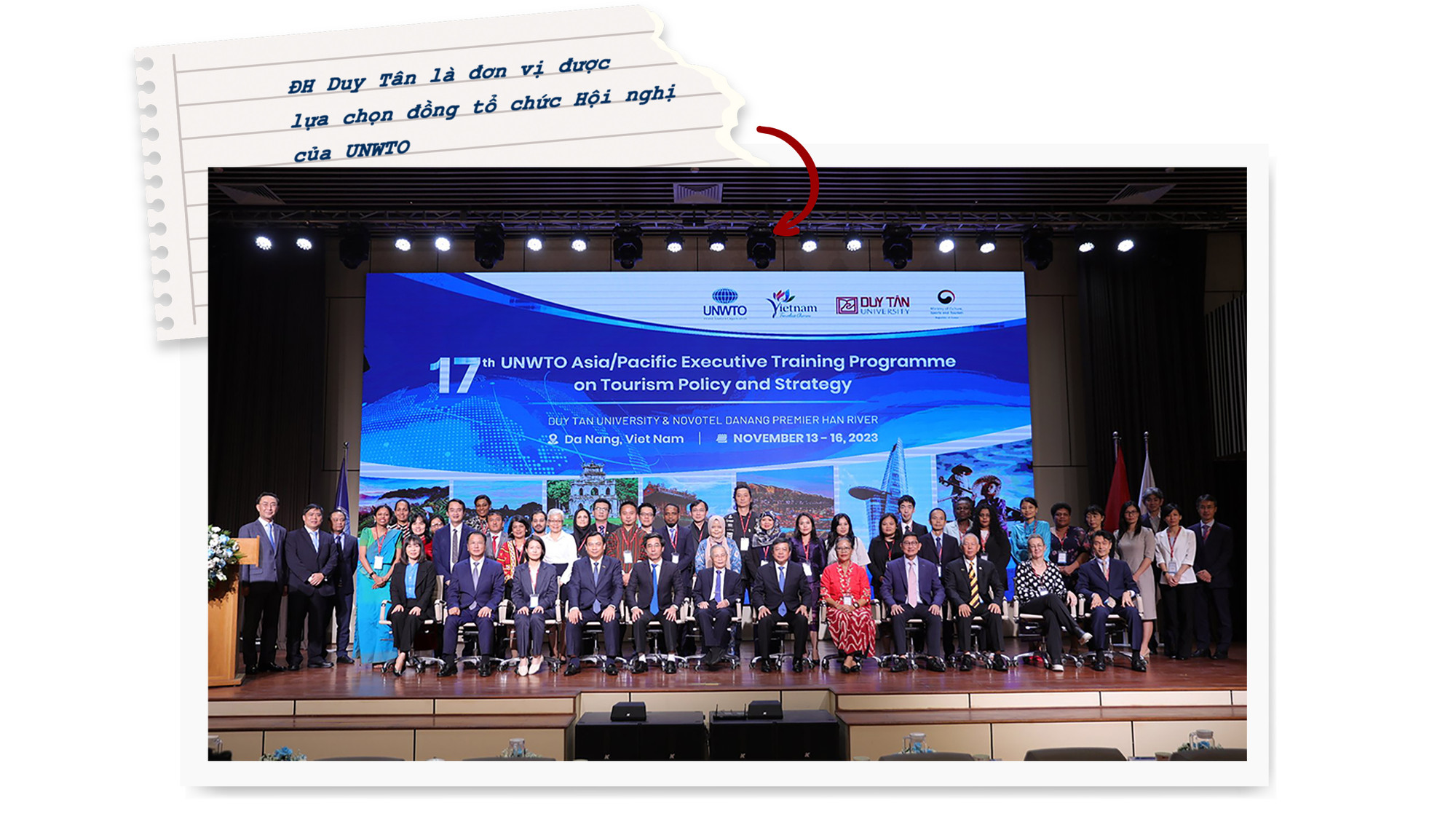 ĐH Duy Tân đã được chọn là đơn vị đồng tổ chức Hội thảo Đào tạo cấp Quản lý Chính sách & Chiến lược Du lịch lần thứ 17 của Tổ chức Du lịch Thế giới (UNWTO, thuộc Liên Hiệp Quốc) khu vực châu Á - Thái Bình Dương. Hội thảo được tổ chức từ ngày 13 đến 16/11/2023 với sự tham gia của 49 đại biểu, bao gồm các lãnh đạo, nhà quản lý, nhà nghiên cứu và chuyên gia đến từ 19 quốc gia và vùng lãnh thổ trong khu vực châu Á - Thái Bình Dương như: Afghanistan, Bangladesh, Ấn Độ, Nhật Bản, Iran, Sri Lanka, Nepal, Myanmar, Việt Nam,… Đây là một sự kiện quan trọng dành cho các lãnh đạo cấp cao của các Chính phủ, các nhà quản lý công trên thế giới trong lĩnh vực Du lịch, đồng thời đánh dấu lần đầu tiên UNWTO tổ chức sự kiện quan trọng này tại một trường đại học là ĐH Duy Tân, Việt Nam.