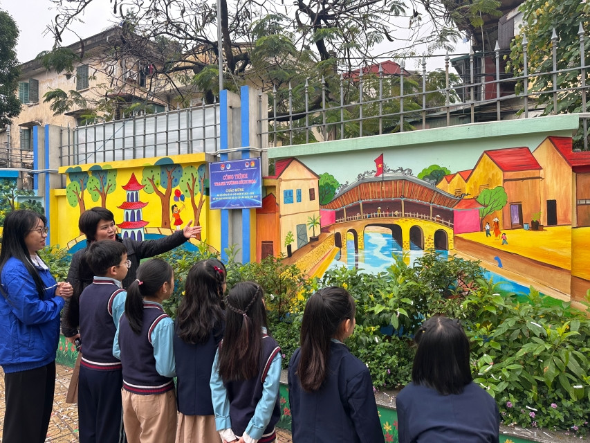 Theo cô Đinh Hồng Hạnh - Tổng phụ trách Liên đội Trường Tiểu học Phương Mai cho biết, giữa Liên đội và Đoàn thanh niên phường luôn có sự gắn kết trong việc tổ chức nhiều hoạt động ý nghĩa cho các bạnnhỏ, đặc biệt năm 2025 là năm có nhiều ngày lễ lớn của đất nước thì công trình tranh tường “Danh thắng 3 miền” phối hợp giữa liên đội và Đoàn phường có ý nghĩa rất lớn trong việc giáo dục học sinh tình yêu quê hương đất nước.