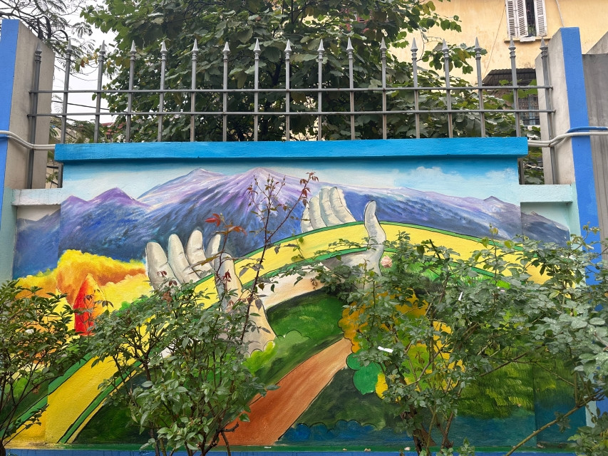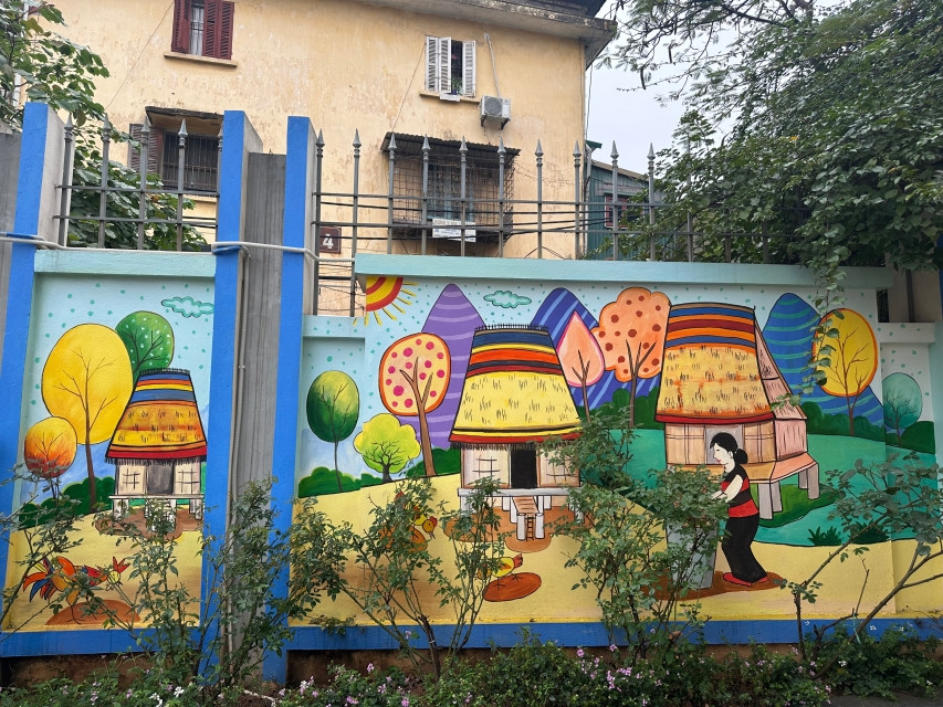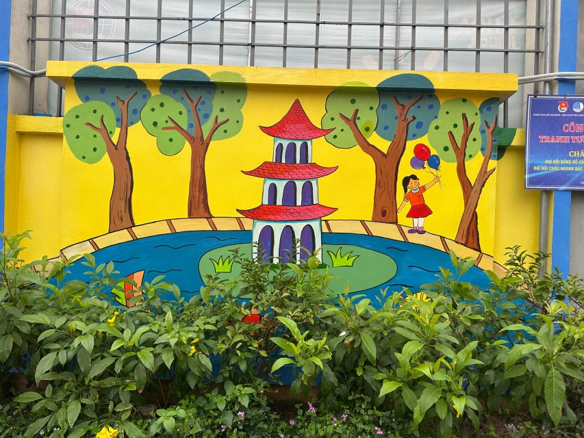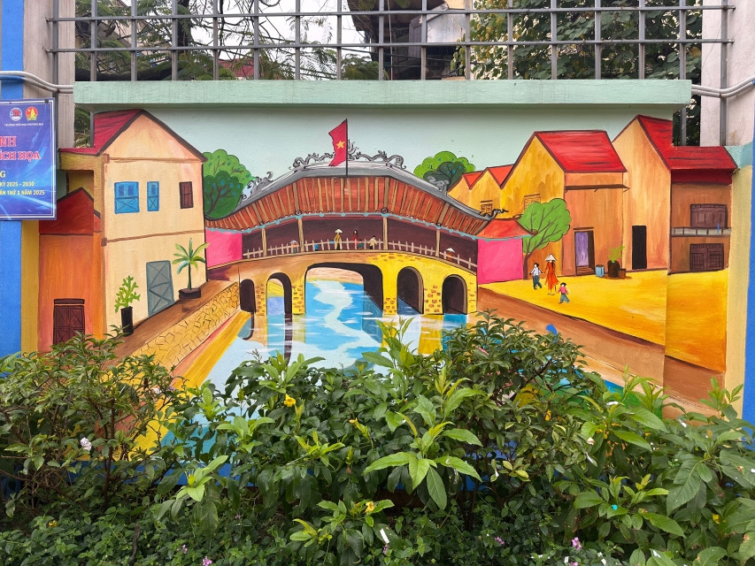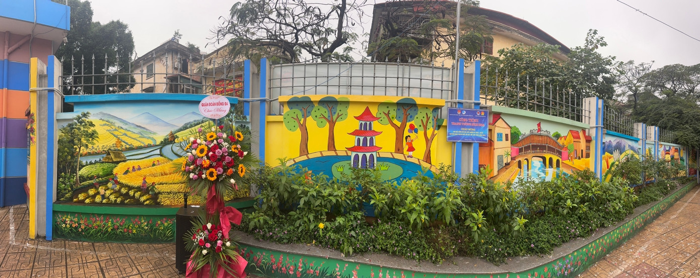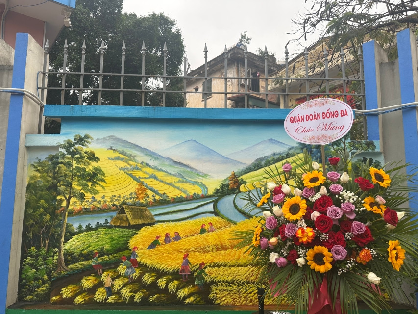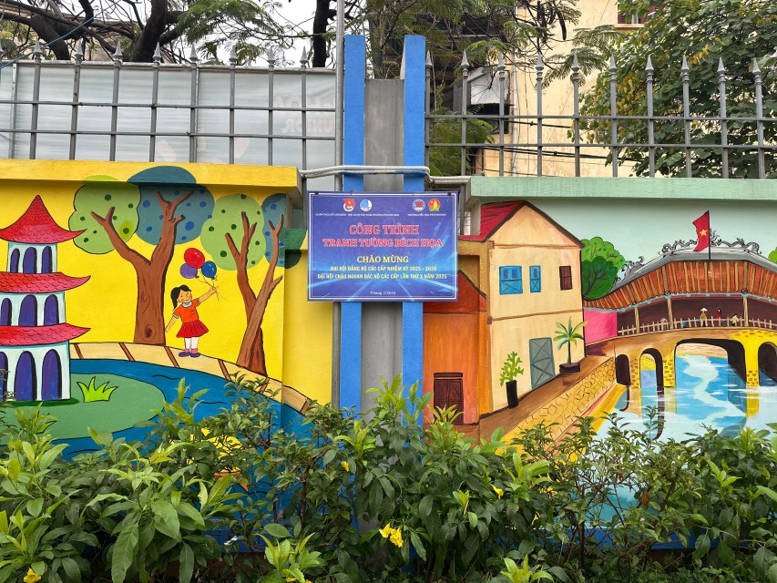 Bên cạnh đó, thầy và trò nhà trường mới đây vừa đón công trình tranh tường bích họa “Danh thắng 3 miền” được khánh thành ngay trong khuôn viên trường do Liên đội Trường phối hợp với Đoàn thanh niên phường Phương Mai thực hiện. Những bức tranh được thực hiện ngay trên bức tường rào gần phía cổng trường, vẽ lại hàng loạt danh thắng nổi tiếng như hồ Hoàn Kiếm (Hà Nội), đồi Mâm Xôi (Mù Cang Chải, Yên Bái), chùa Cầu (Hội An, Quảng Nam), cầu Vàng (Bà Nà Hills, Đà Nẵng), nhà Rông (Tây Nguyên)…