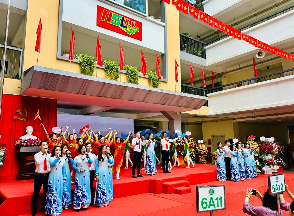 Nhà giáo Hoàng Thanh Huyền, Phó Bí thư Chi bộ, Phó Hiệu trưởng nhà trường đọc thư của Chủ tịch nước Võ Văn Thưởng gửi tới cán bộ, giáo viên và học sinh cả nước nhân dịp khai trường.