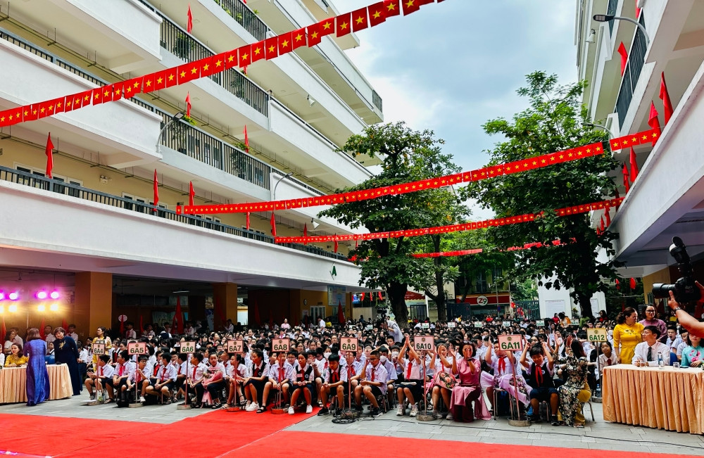 Phát biểu trong Lễ Khai giảng, Nhà giáo Phạm Thu Hà, Bí thư Chi bộ, Hiệu trưởng nhà trường đã thay mặt toàn thể Hội đồng Giáo dục, gửi tới các bạn học sinh lời đón chào nồng nhiệt. Nhà giáo Phạm Thu Hà cũng chính thức bắt đầu năm học mới bằng tiếng trống trường rộn ràng, tiếp thêm sức mạnh, quyết tâm cho mỗi thầy cô, học sinh để chuẩn bị những điều tốt nhất cho năm học mới.