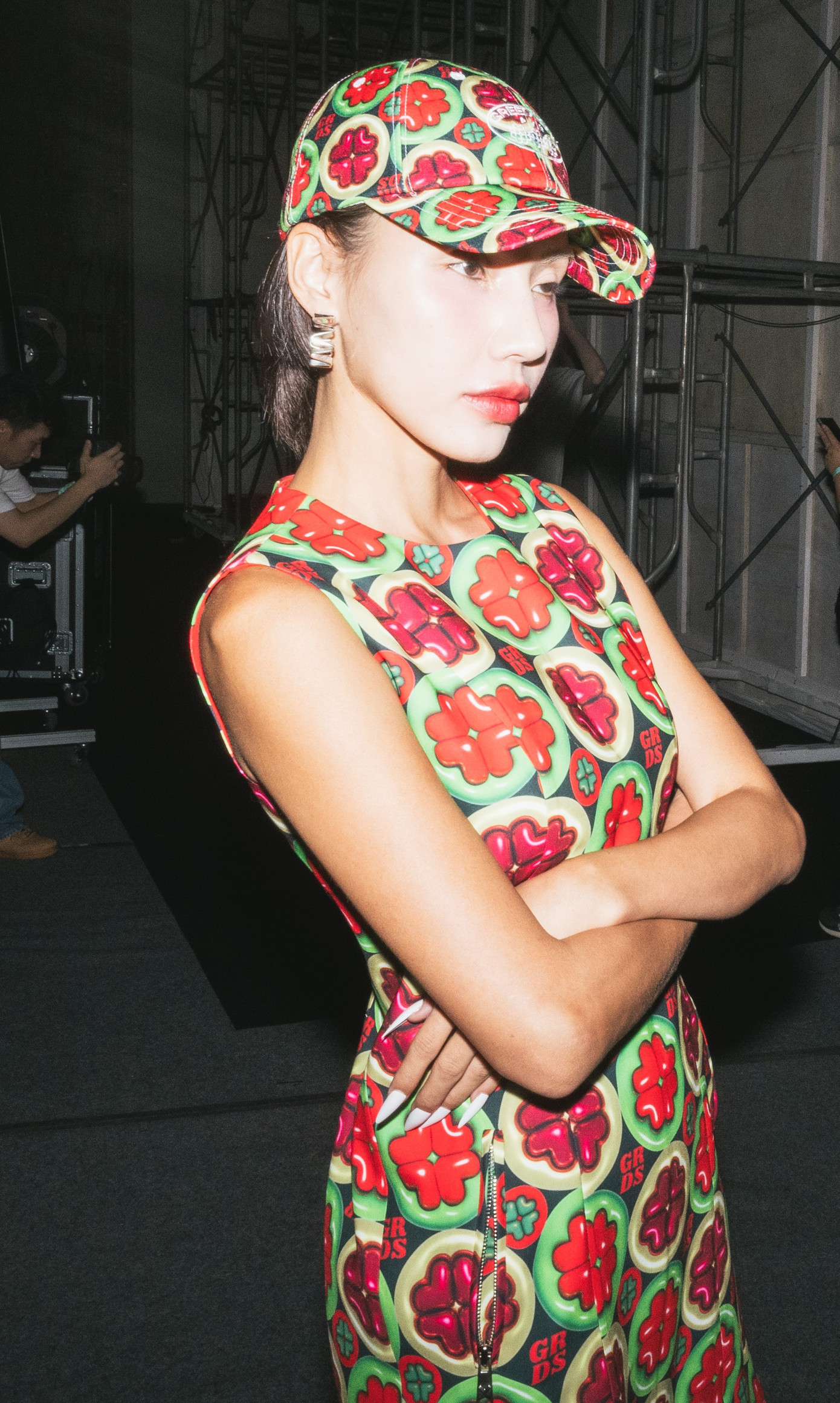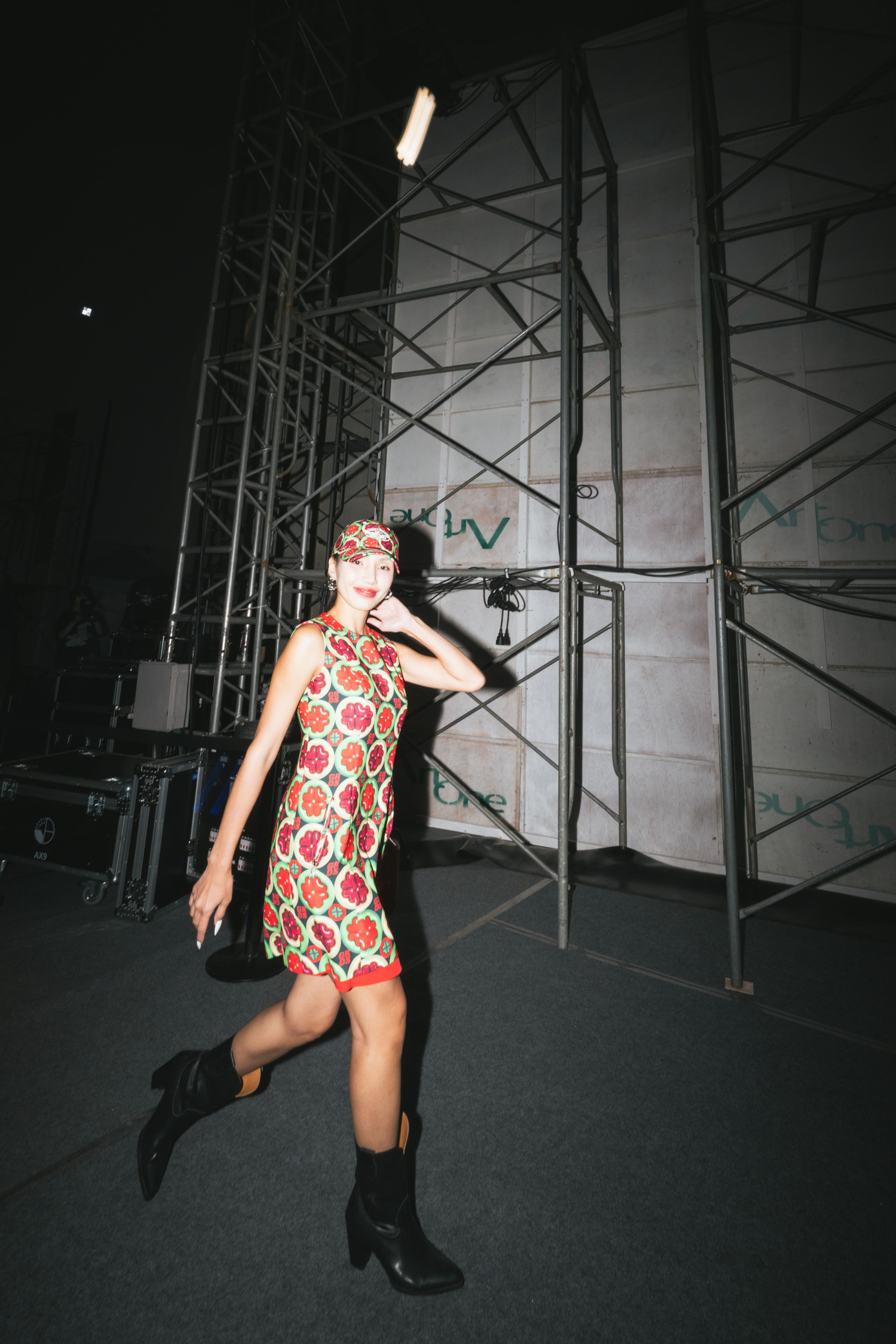 Khoác lên mình bộ váy suôn in hoạ tiết sặc sỡ, kết hợp cùng phụ kiện mũ matching thuộc BST "Greedilous Xuân - Hè 2025", GiGi Hương Giang đã có màn thể hiện xuất sắc trên sàn diễn thời trang quốc tế. Nữ ca sĩ không hề bị lép vế so với dàn model chuyên nghiệp nhờ thần thái tự tin, cuốn hút.