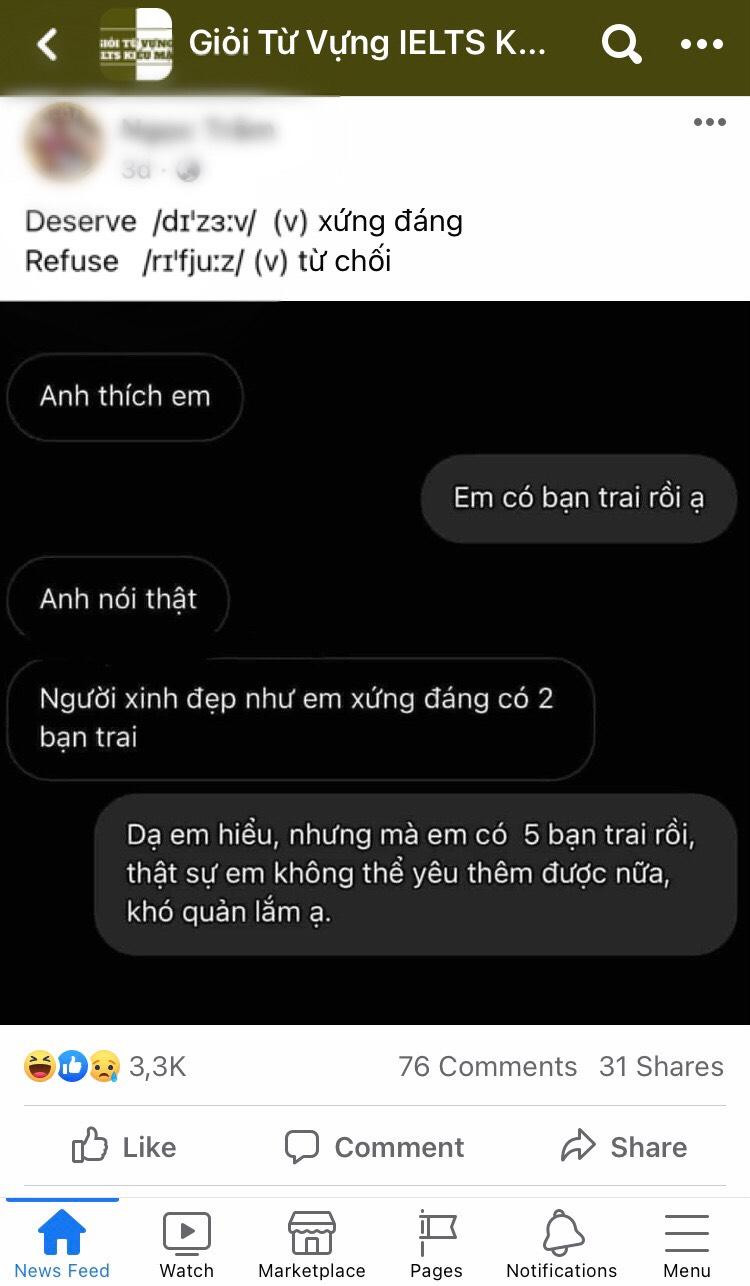Sở hữu tên gọi có phần "ngả ngớn", thế nhưng Giỏi Từ Vựng IELTS Kiểu Mặn đã thu hút hơn 300 nghìn thành viên, được cộng đồng mạng khoái chí "truyền tai" nhau nhờ độ mặn mòi trong từng bài đăng.