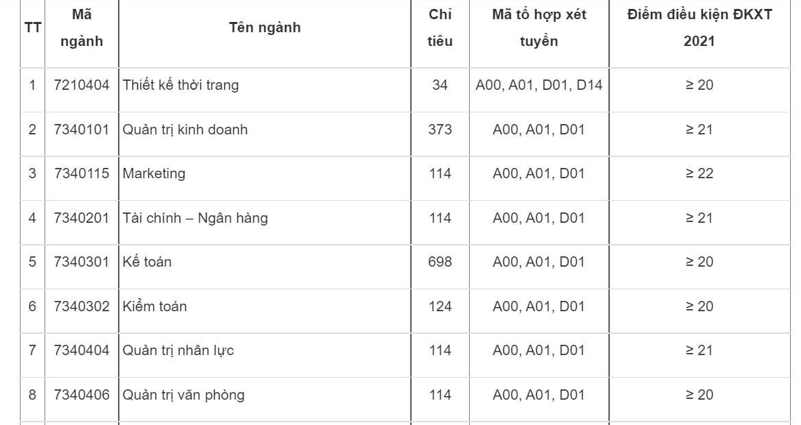 Hội đồng tuyển sinh đại học, trường Đại học Công nghiệp Hà Nội thông báo chỉ tiêu, mã tổ hợp xét tuyển, điểm điều kiện đăng ký xét tuyển (ĐKXT) đại học chính quy theo phương thức xét tuyển dựa vào kết quả thi tốt nghiệp THPT năm 2021, cụ thể như sau: