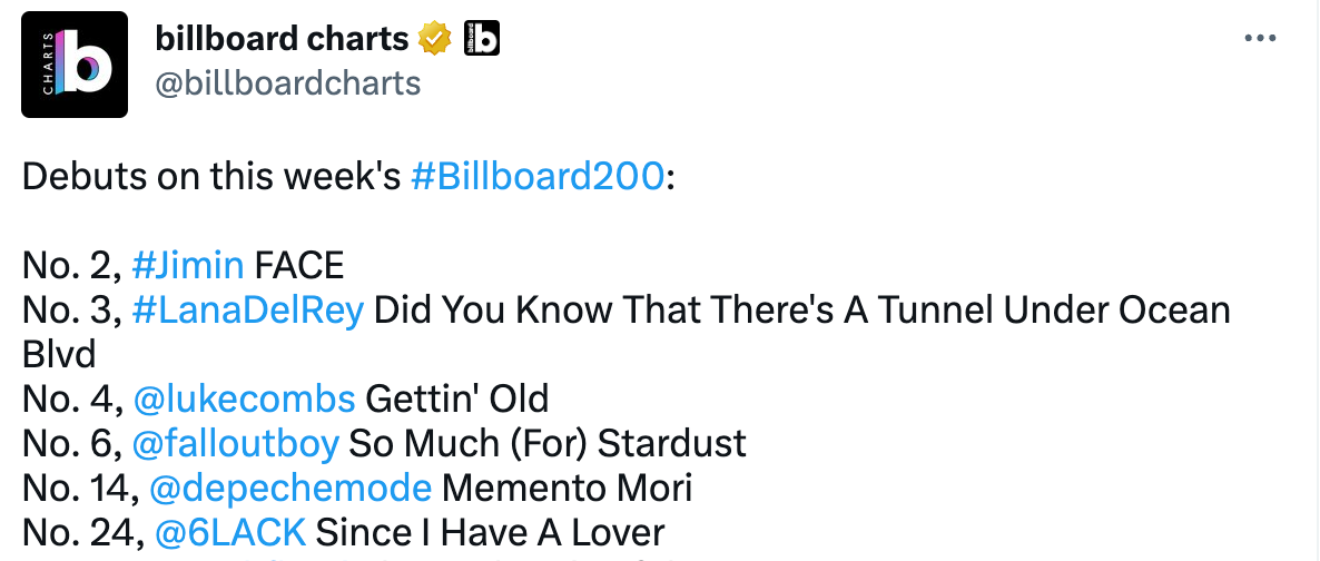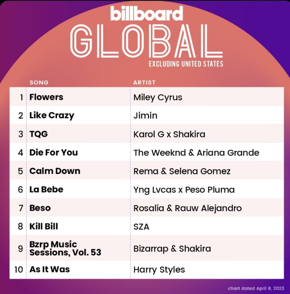 | Like Crazy còn giúp Jimin nắm giữ vị trí thứ 2 tại hai BXH The Global Excl. U.S và Global 200. |