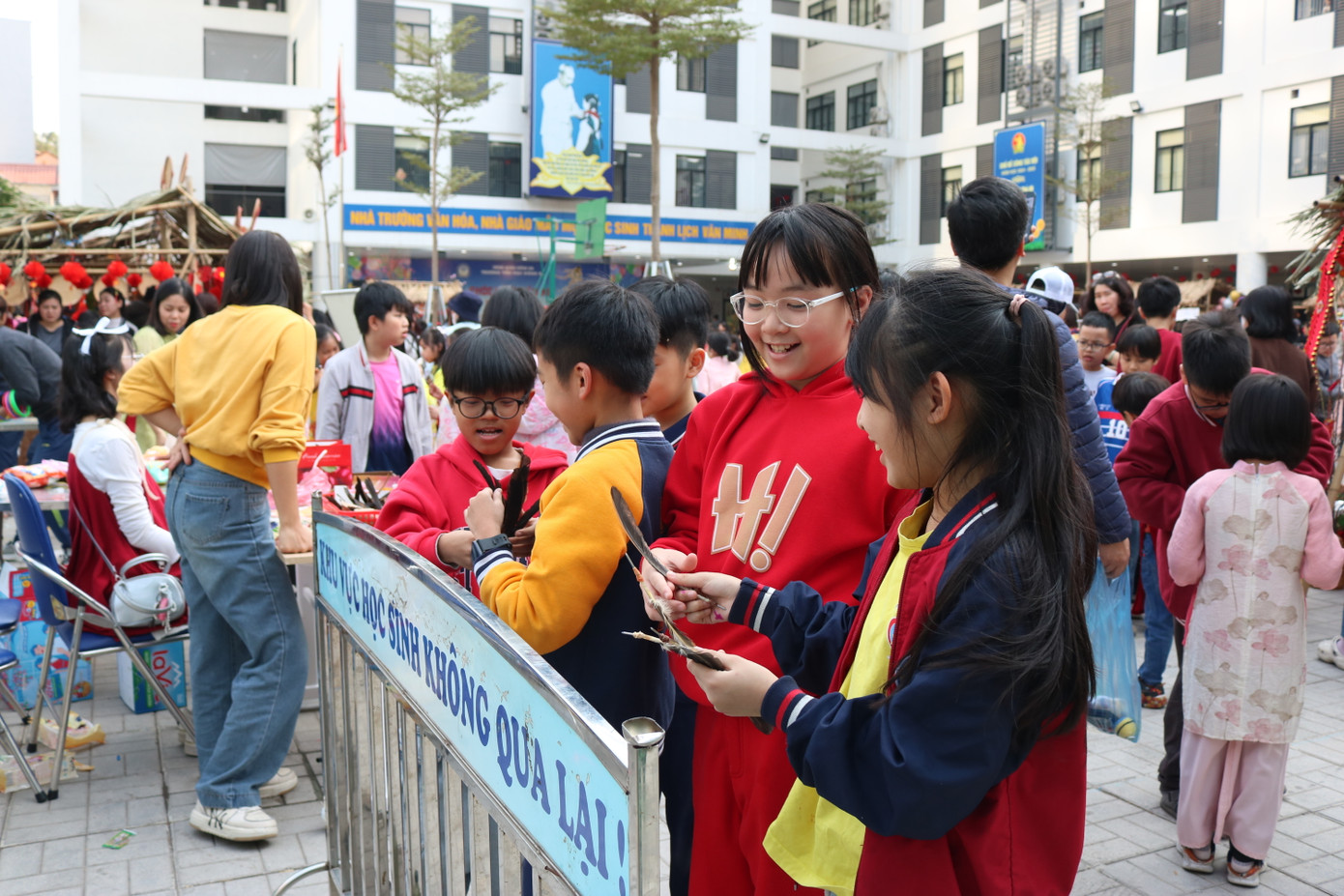 | Hội chợ Xuân 2025 của trường Tiểu học Đống Đa là nơi xuất hiện của những "nhà buôn nhí" gặp "giá nào cũng bán", với phương châm vui là chính. |