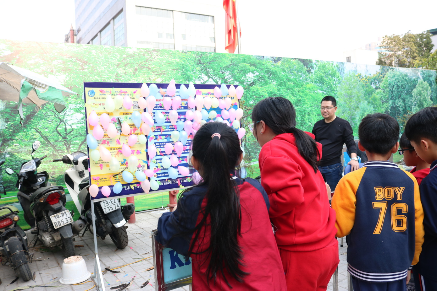 Xuyên suốt thời gian diễn ra hội chợ, thầy cô trong ban tổ chức cũng liên tục thông báo qua loa nhắc nhở các bạn học sinh để rác đúng nơi quy định, nhặt rác trong sân. Một số bạn mải vui làm rơi tiền, ví cũng được thông báo để tìm hoặc tới nhận lại đồ.