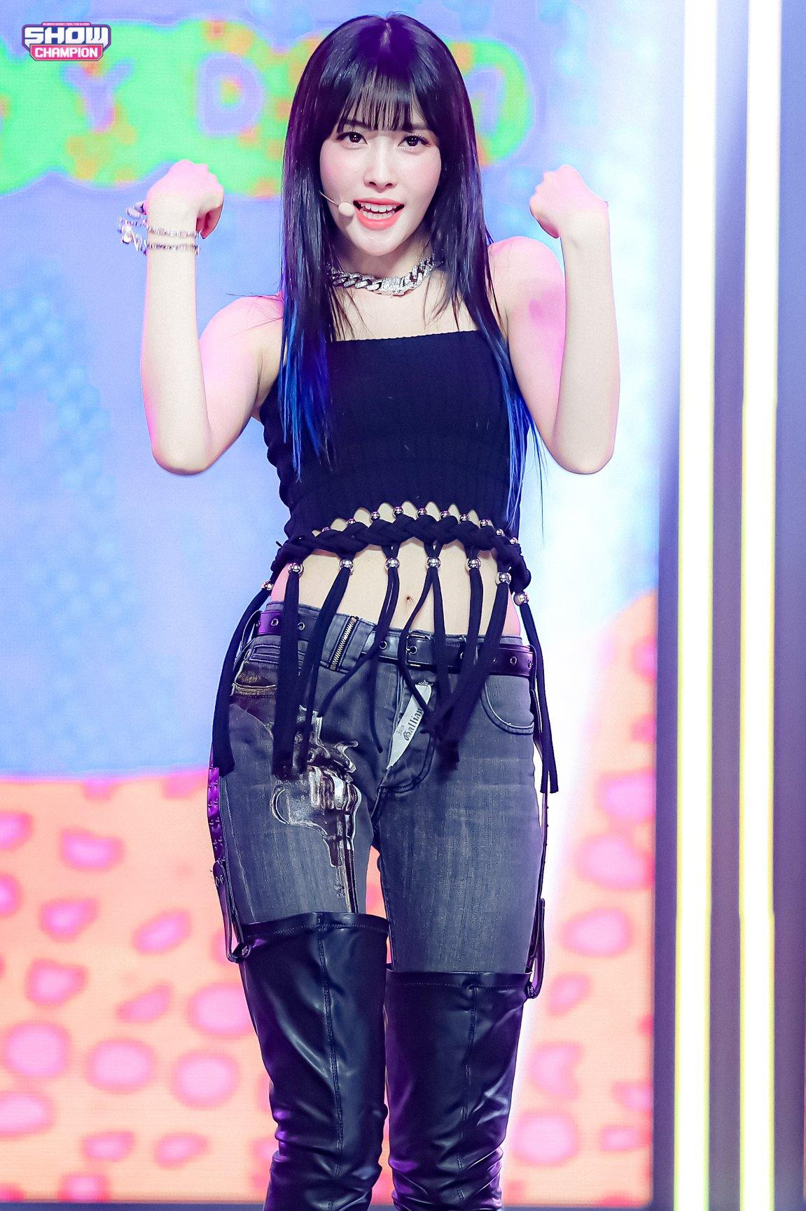 Khi Yoon đứng cùng nhóm STAYC thì netizen càng dễ thấy đôi chân cực phẩm của cô dài đến mức nào.