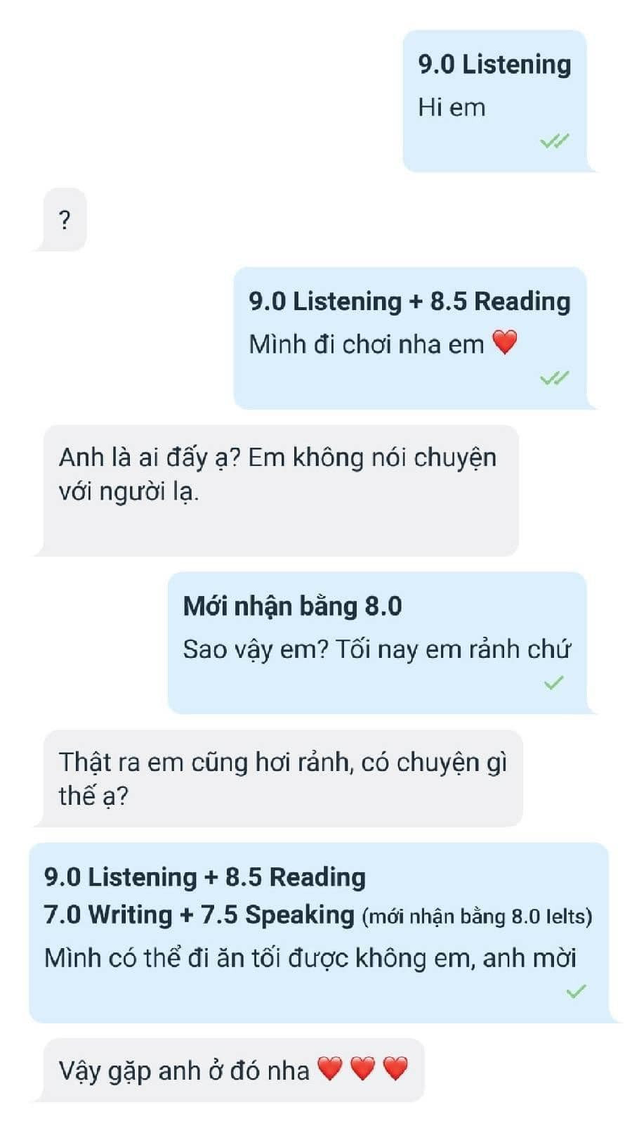 | IELTS 8.0 sẽ hẹn hò nhau ra sao, học bổng Hoàng gia Anh sẽ có tính cách thế nào... Mời bạn chiêm ngưỡng nhé! |