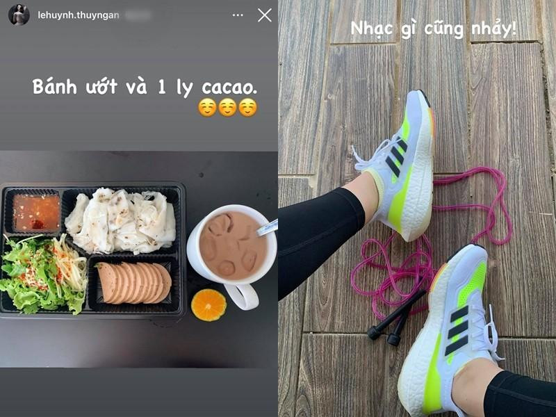 Trên Instagram cá nhân của mình, Thúy Ngân liên tục cập nhật những hình ảnh mới, khoe thực đơn và các hoạt động trong ngày của mình. Cô chia sẻ được thưởng thức nhiều món ăn ngon như bánh bèo, bánh cuốn, bánh mì bò kho, uống ca cao và nước cam mỗi ngày để tăng sức đề kháng.