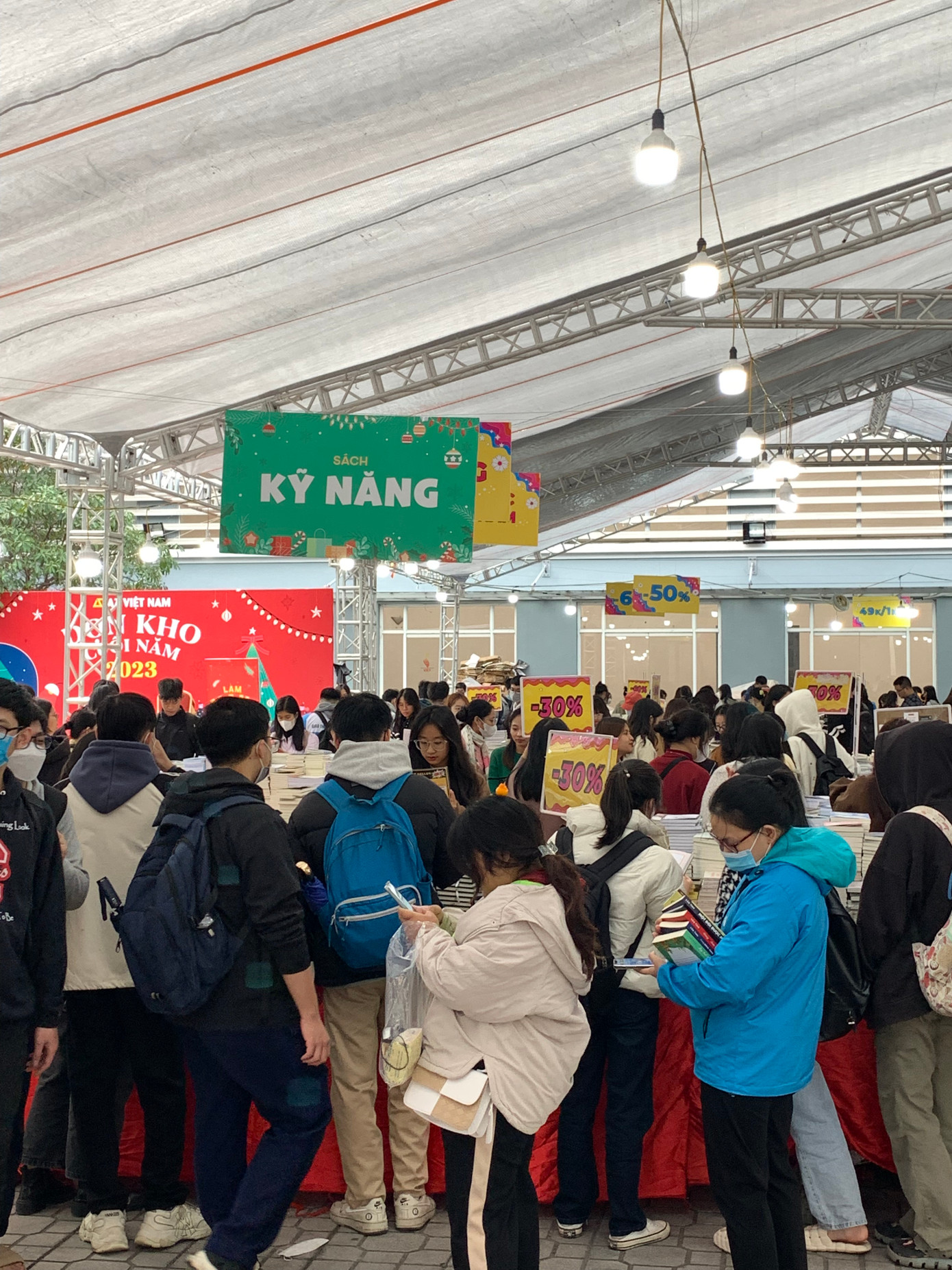 Vào những tháng cuối năm, nhiều hội sách cũng tới tấp ùa đến mở ra cả thiên đường cho hội mê sách. Hiện tại, ở "tọa độ" Học viện Thanh thiếu niên Việt Nam, hội sách dọn kho cuối năm đang diễn ra thu hút hàng trăm lượt người ghé qua mỗi ngày, mở cửa từ 8h tới 22h hằng ngày từ 4 - 10/12.