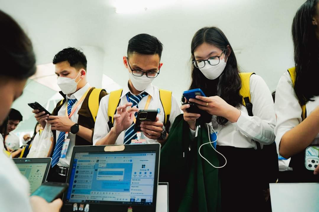 | Các bạn sinh viên trải nghiệm công nghệ tại triển lãm. (Ảnh: TLTĐ) |