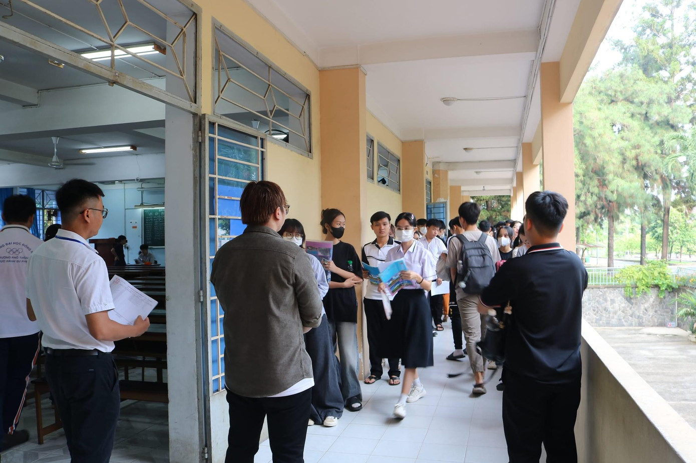 | Thí sinh tranh thủ ôn lại bài trước khi thi. (Ảnh: ĐHQG TP. HCM) |