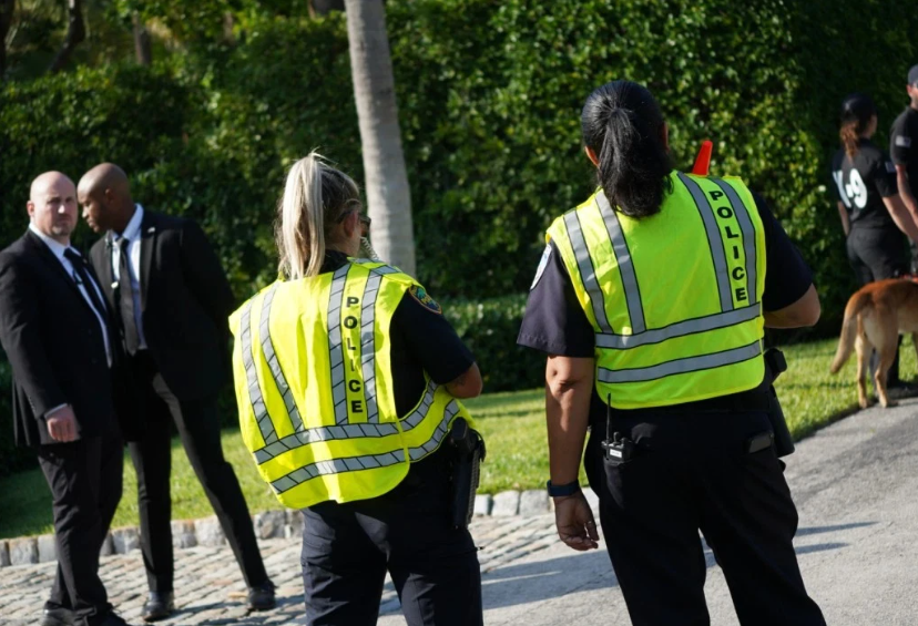 | An ninh nghiêm ngặt bên ngoài dinh thự. |