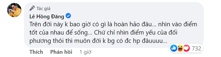 Bài viết của Hồng Đăng nhanh chóng nhận về lượt tương tác khủng từ phía cư dân mạng. Đa số mọi người đều thích sự "lột xác" của Hồng Đăng trong vai diễn mới. Đặc biệt, vợ của Đức "xoăn" - Vân Khánh (Lan Phương) cũng vào tung hứng cùng ông xã màn ảnh: "Hãy như Đức".