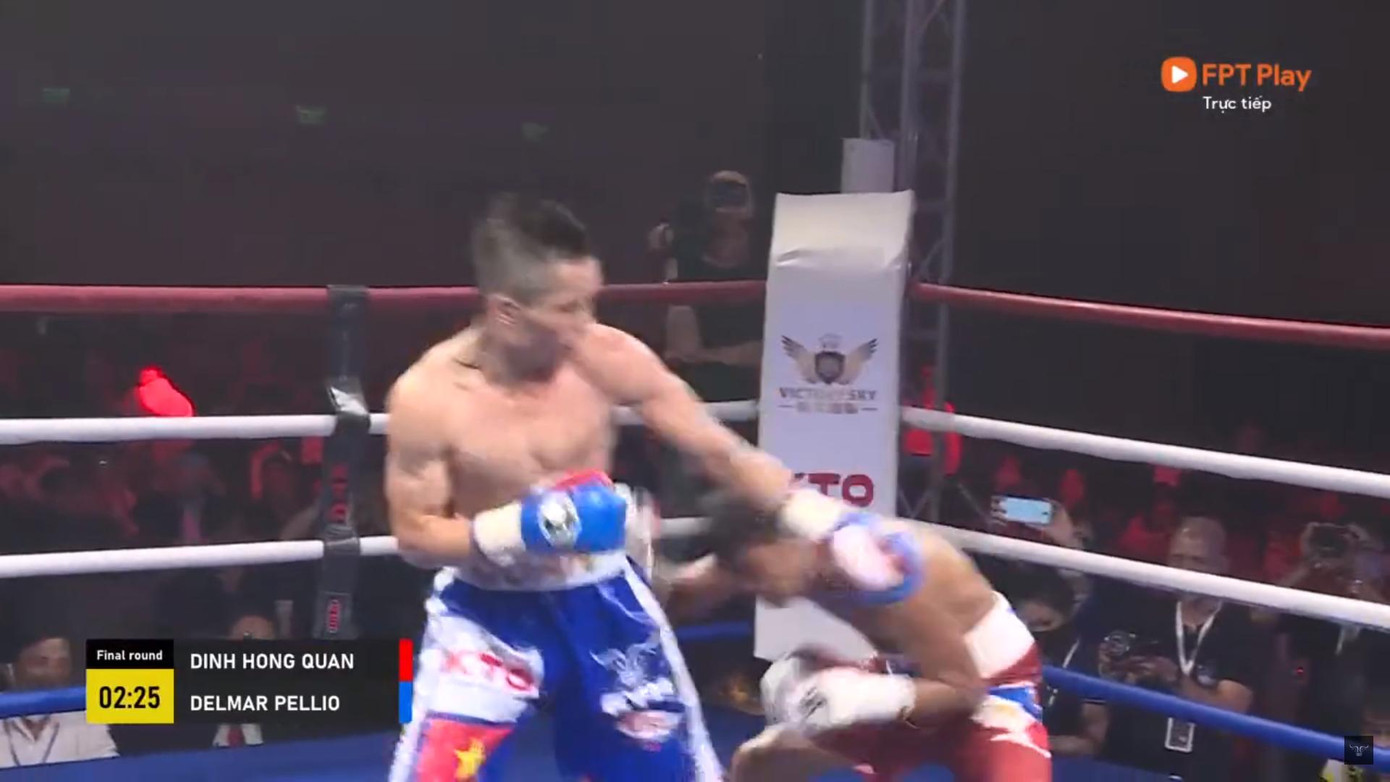 Có thời điểm, Delmar Pellio dính hàng loạt cú đấm vào mặt và tưởng chừng đã bị Hồng Quân hạ knock-out. Tuy nhiên, võ sĩ người Philippines vẫn đứng vững sau 10 hiệp đấu.