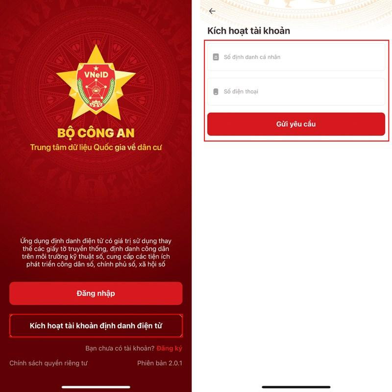 Bước 2: Mở VNeID lên > Chọn Kích hoạt tài khoản định danh điện tử > Tại đây các bạn nhập Số định danh cá nhân (12 chữ số trên thẻ Căn cước công dân), nhập Số điện thoại > Gửi yêu cầu. Việc còn lại của bạn chỉ là đợi kết quả phê duyệt, thông tin sẽ được gửi qua tin nhắn SMS, tiếp đó bạn chỉ cần vào ứng dụng kích hoạt và sử dụng.
