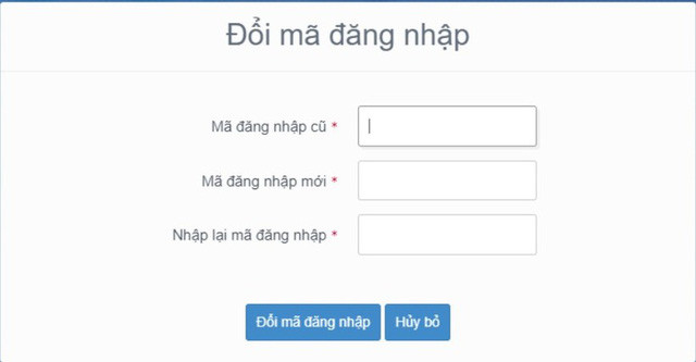 Bước 1: Thí sinh đăng nhập bằng chứng minh thư và mã đăng nhập (mật khẩu) mà điểm tiếp nhận hồ sơ cung cấp hoặc trong mail đã nhận. Sau khi đăng nhập, màn hình đổi mã đăng nhập sẽ được hiển thị. Thí sinh thực hiện đổi mã đăng nhập (đổi mật khẩu).
