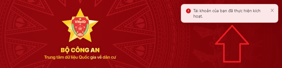 Lưu ý, nếu tài khoản đã kích hoạt thì trang sẽ thông báo "Tài khoản của bạn đã thực hiện kích hoạt".