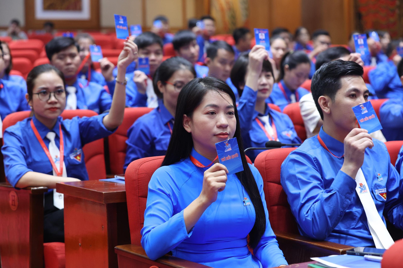 | Đại biểu biểu quyết các nội dung tại phiên khai mạc Đại hội. Ảnh: Như Ý |
