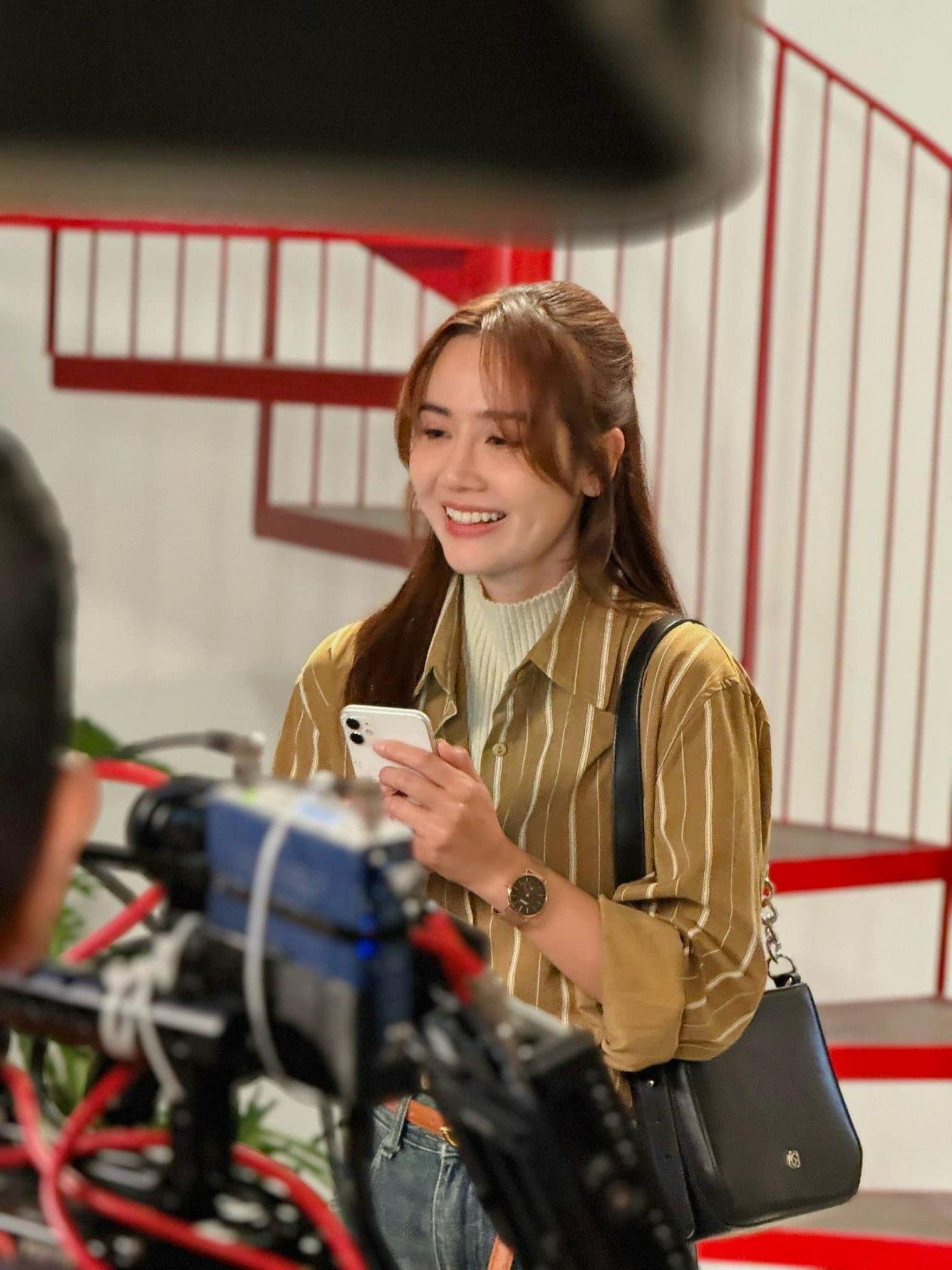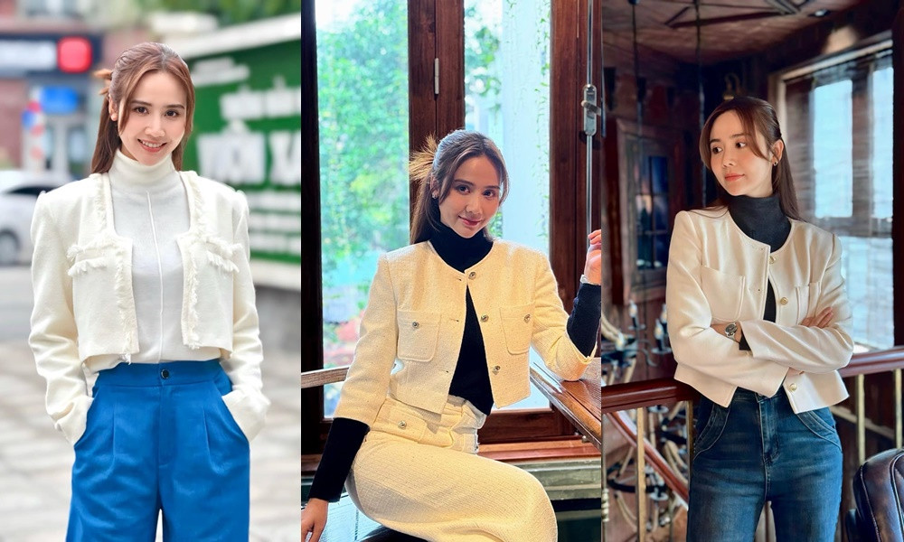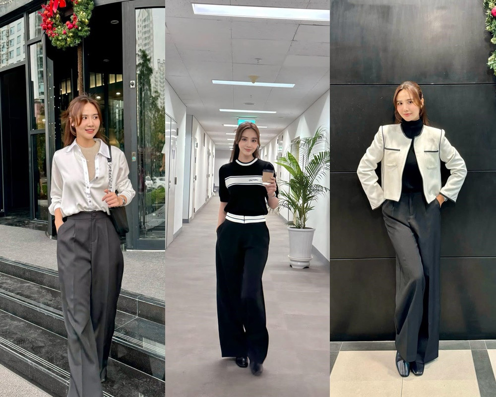 Sau đó, Huyền Lizzie tiếp tục thử nghiệm combo quần ống rộng và áo khoác lửng cho nhân vật mình đóng. Ở phim Thương Ngày Nắng Về, nữ diễn viên từng ghi điểm với những mẫu quần ống rộng cạp cao cực kỳ tôn dáng và sang phim mới, Huyền Lizzie tiếp tục chứng tỏ quần ống rộng kèm giày cao gót giúp "hack dáng" cực tốt.