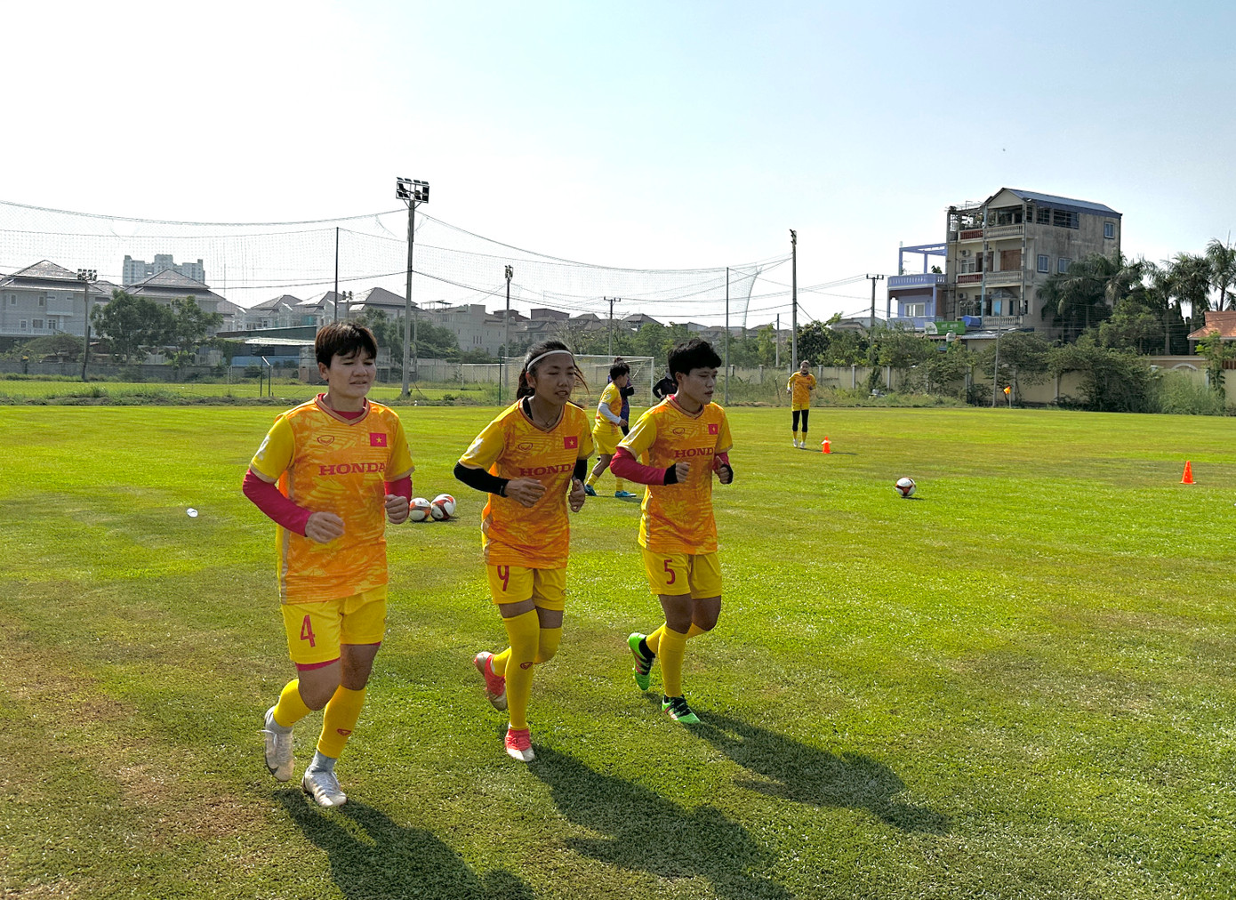 Buổi tập của đội tuyển nữ Việt Nam diễn ra tại sân tập của trường cấp ba Chbar Ampov. Thời tiết tại Phnom Penh tiếp tục duy trì nền nhiệt cao, nhưng tinh thần của các cầu thủ vẫn rất hăng hái và tích cực tập luyện.