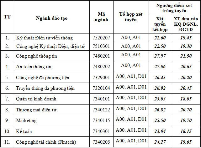 Ngưỡng điểm xét tuyển đủ điều kiện trúng tuyển (thí sinh đạt ngưỡng điểm này trở lên được xác định là thí sinh đủ điều kiện trúng tuyển trừ điều kiện tốt nghiệp THPT)
