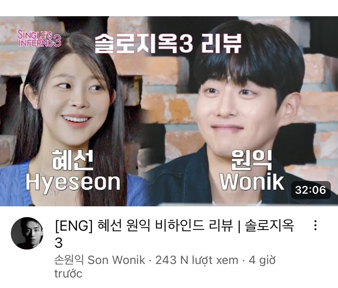Mới đây, người chơi nam Son Won Ik đăng tải một nội dung đáng chú ý trên kênh YouTube cá nhân. Anh mời nữ “học bá” Hye Seon cùng reaction các phân cảnh trong chương trình mà cặp đôi góp mặt. Cặp đôi bật mí nhiều sự thật, góc khuất đằng sau chương trình khiến người hâm mộ bất ngờ.