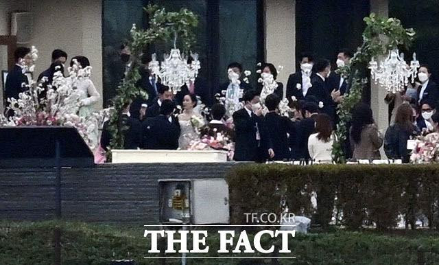 Đám cưới được tổ chức riêng tư, chỉ có gia đình và bạn bè thân thiết nên hình ảnh hôn lễ được giữ kín. Tuy nhiên, đầu giờ chiều nay, những hình ảnh trong đám cưới được báo Hàn đăng tải. Cô dâu, chú rể đang tập dượt cho buổi lễ.