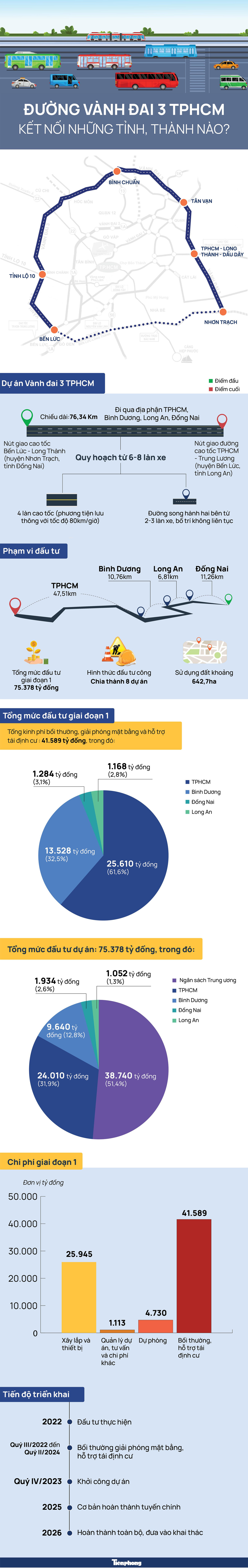 [Infographics] Đường vành đai 3 TPHCM kết nối những tỉnh, thành nào?